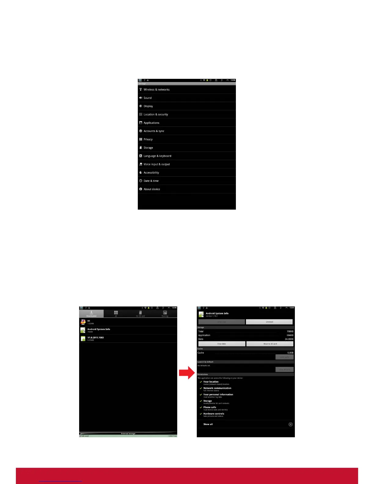 Touch to enter applications menu > Settings > Applications > Manage applications. You will