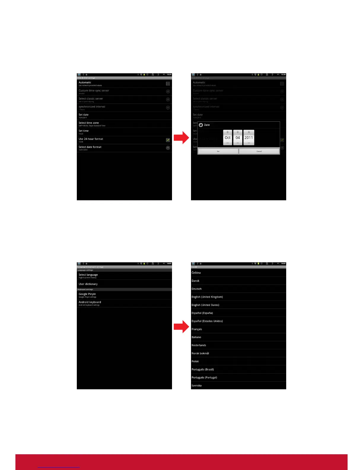 Touch the “Settings” icon from the applications menu, select “Date & time settings" and