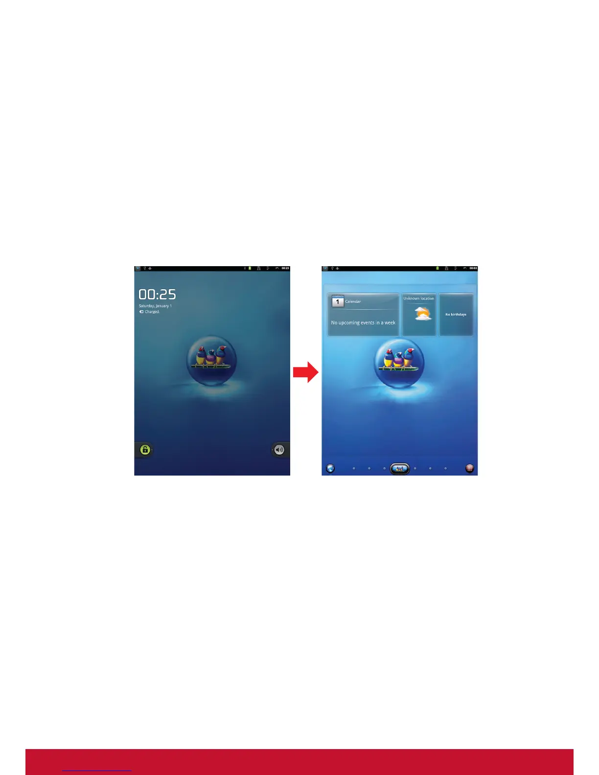 L'accueil du système (le bureau) apparaît comme suit (un mouvement du dispositif