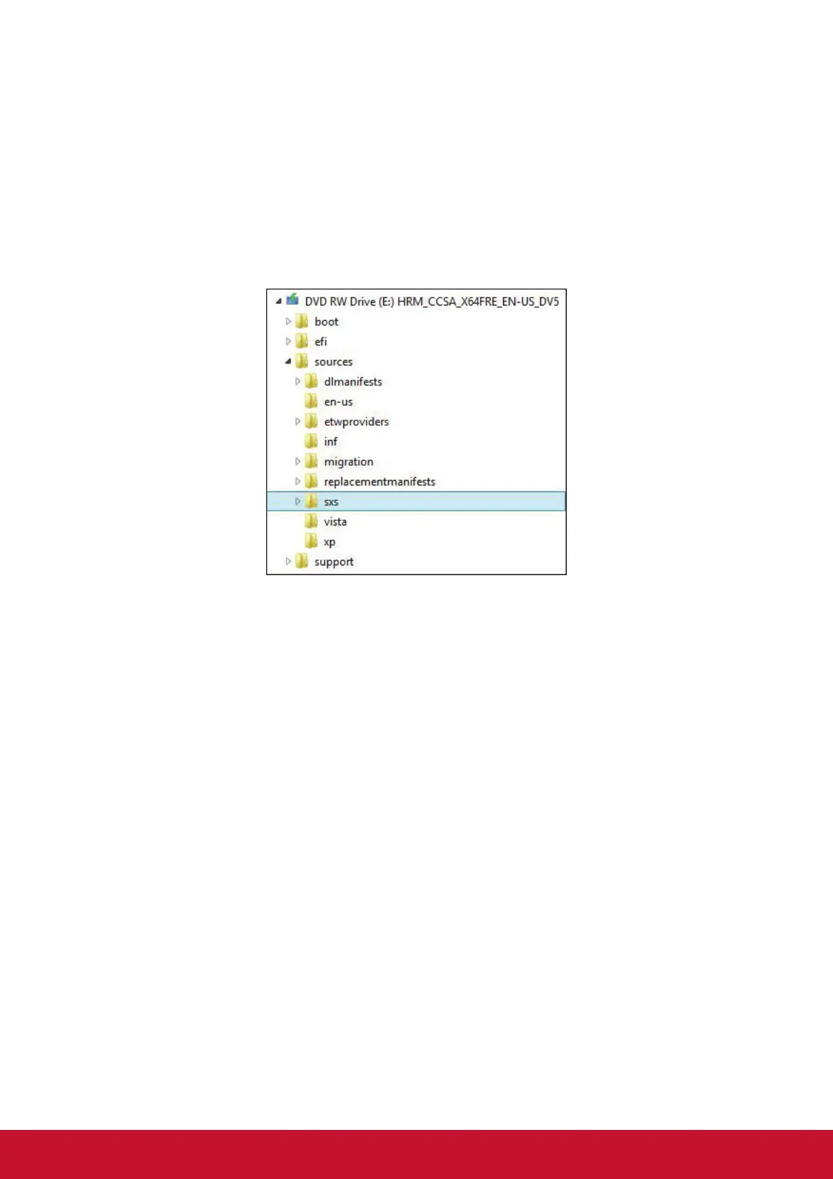 in folder E:\sources\sxs. (In this case E: the user’s drive letter on which the user