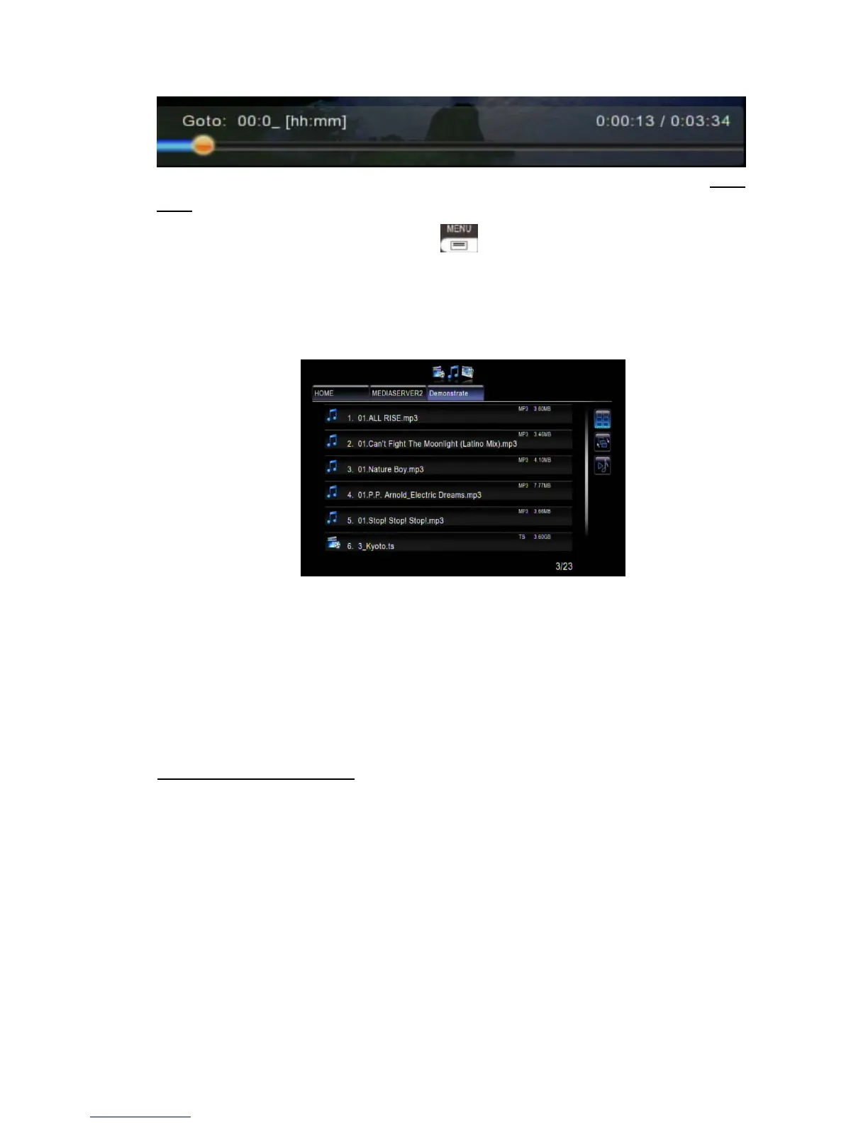 go back to where you were in a long directory path by pressing ‘VIDEO’, ‘MUSIC’ or ‘PICTURE’