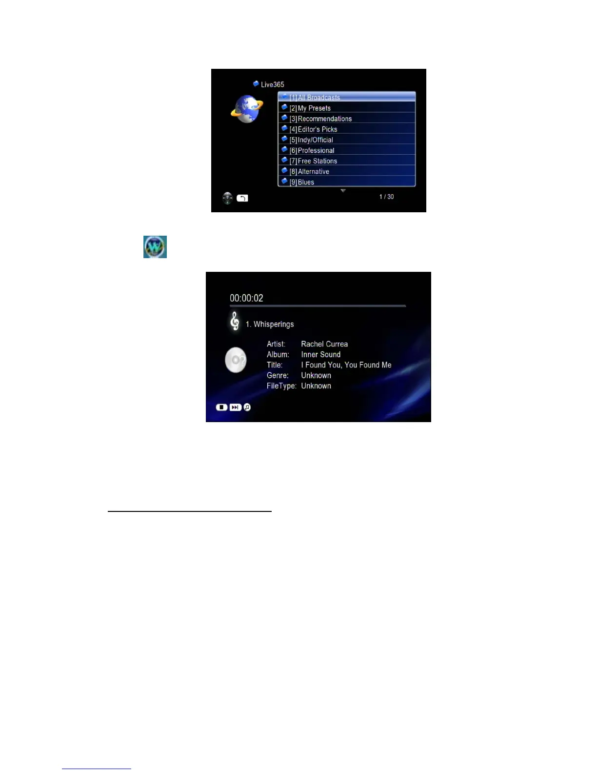 5. Select a radio station from list, and press “OK”, “Play”, or “Left” button to play it.