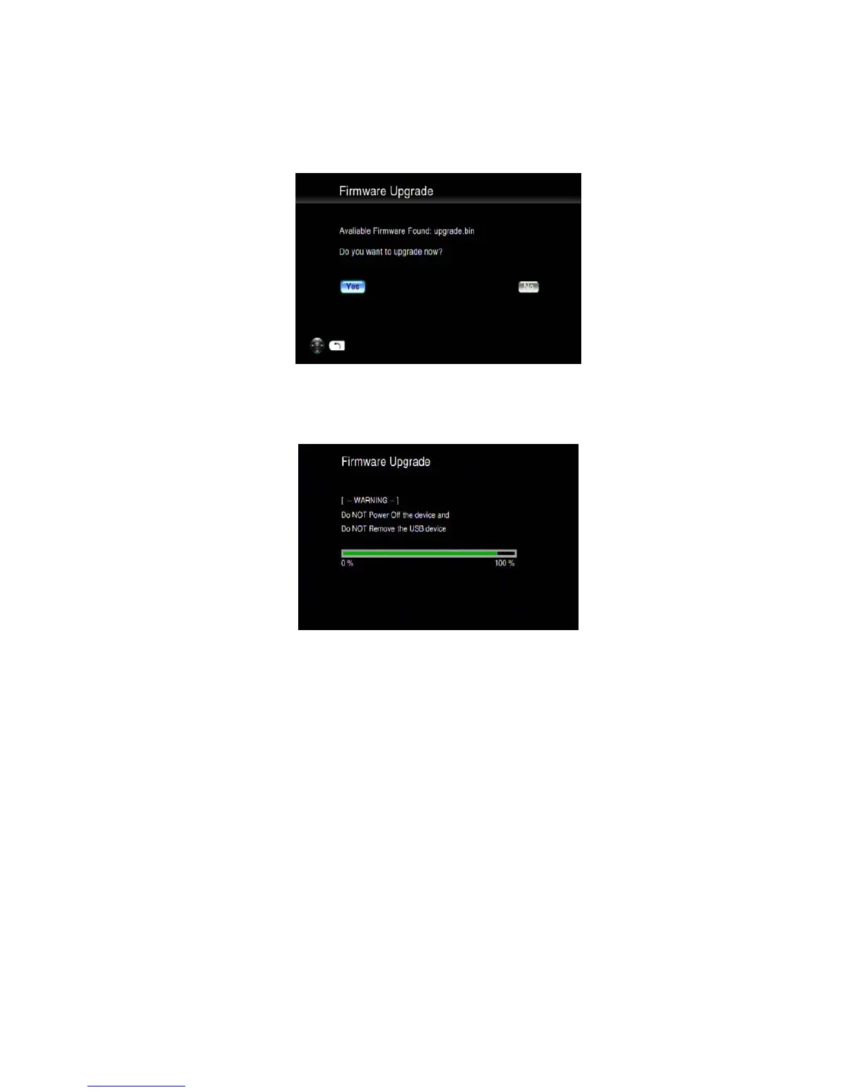 8. Select “Yes” to proceed or “No” to cancel. Please note that the power must not be turned off or