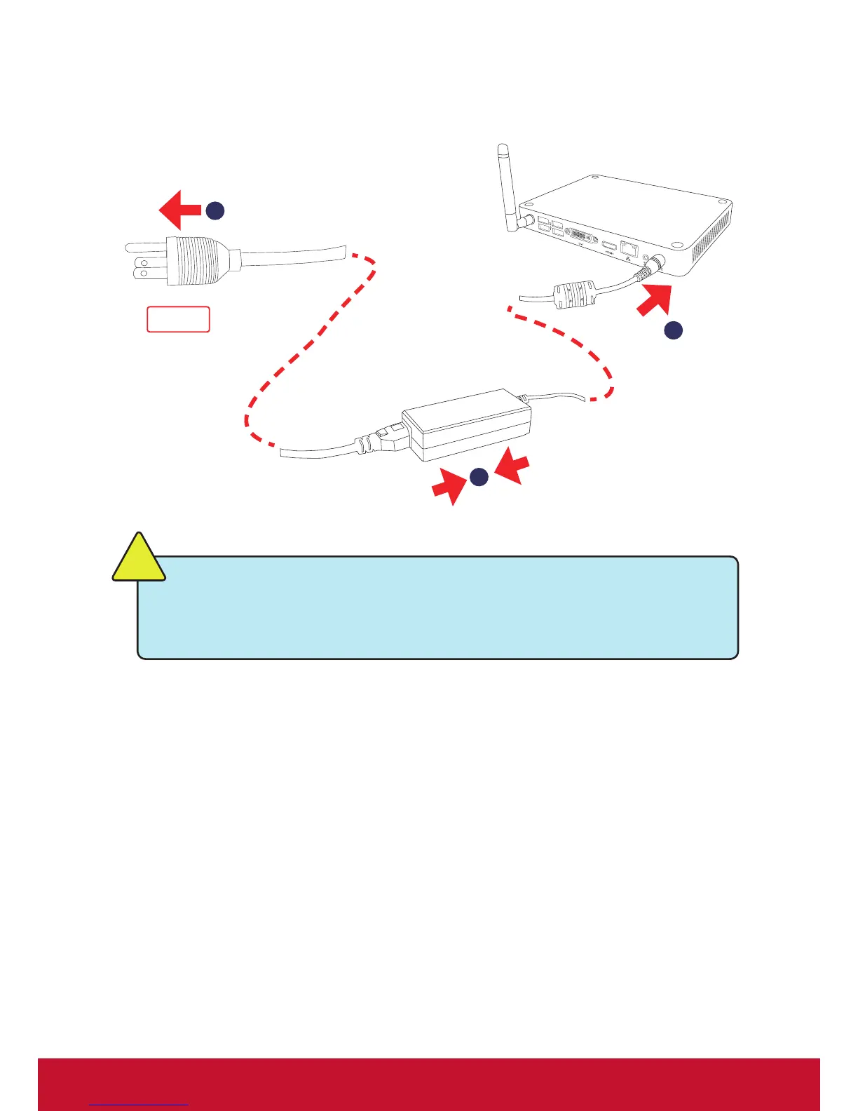 Connect the power adapter to the power input port of the PC Mini, and push the power button to