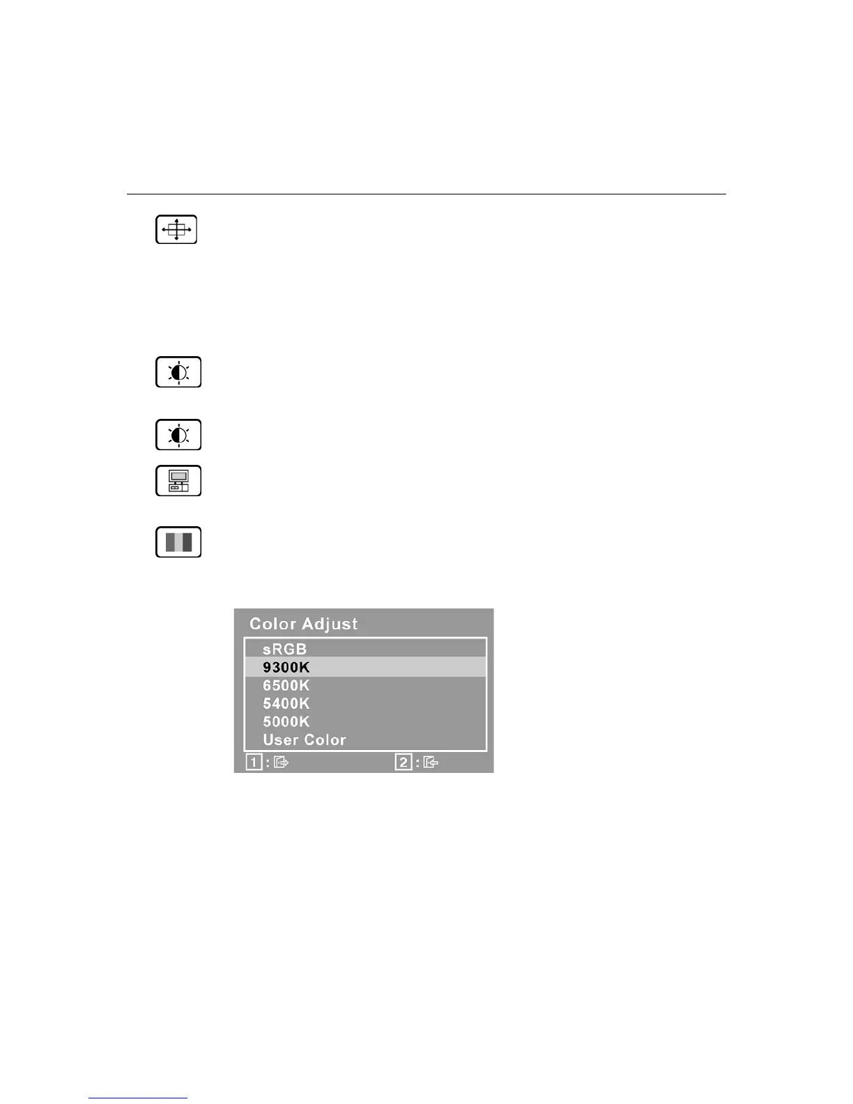 (G) ja sinistä (B) voidaan säätää erikseen. Tuotteen oletusasetuksena on 6500K