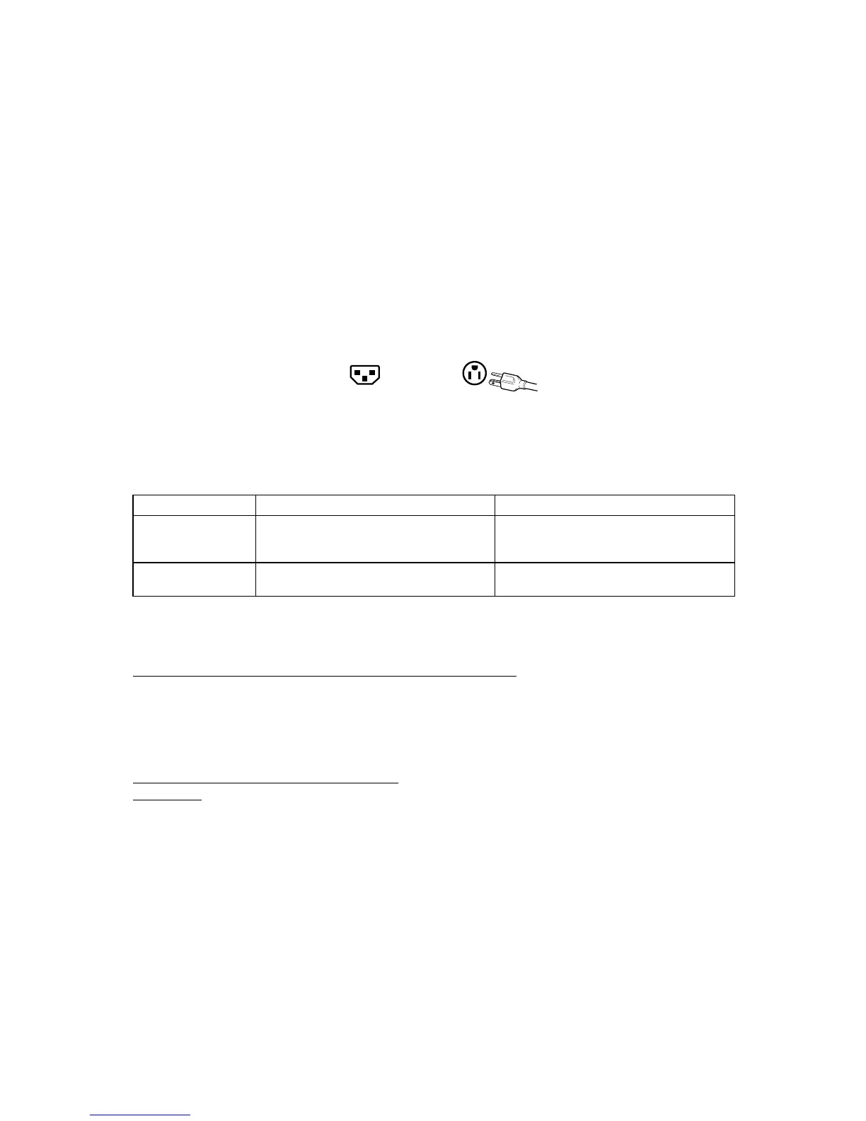 to the current rating for your unit. Please consult the table below for the selection criteria for power cords