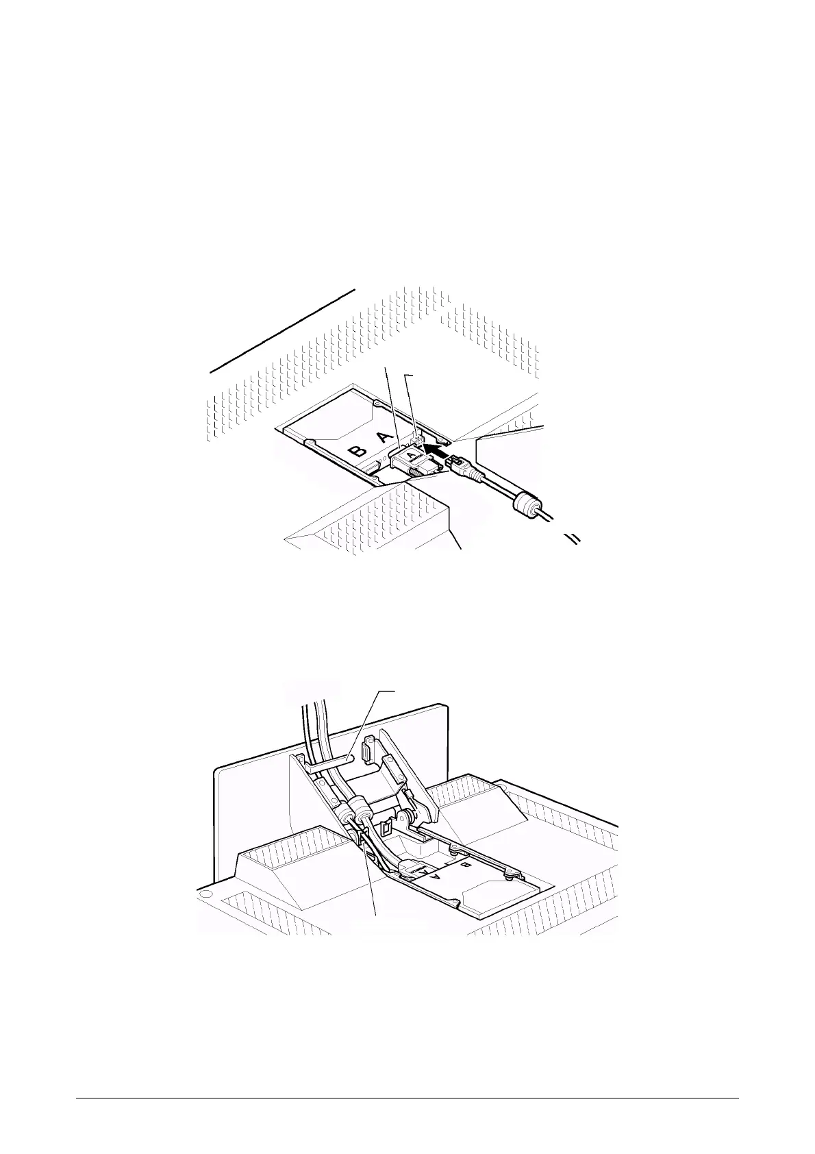 2. Route the cables through the cable clamp and the cable hook.