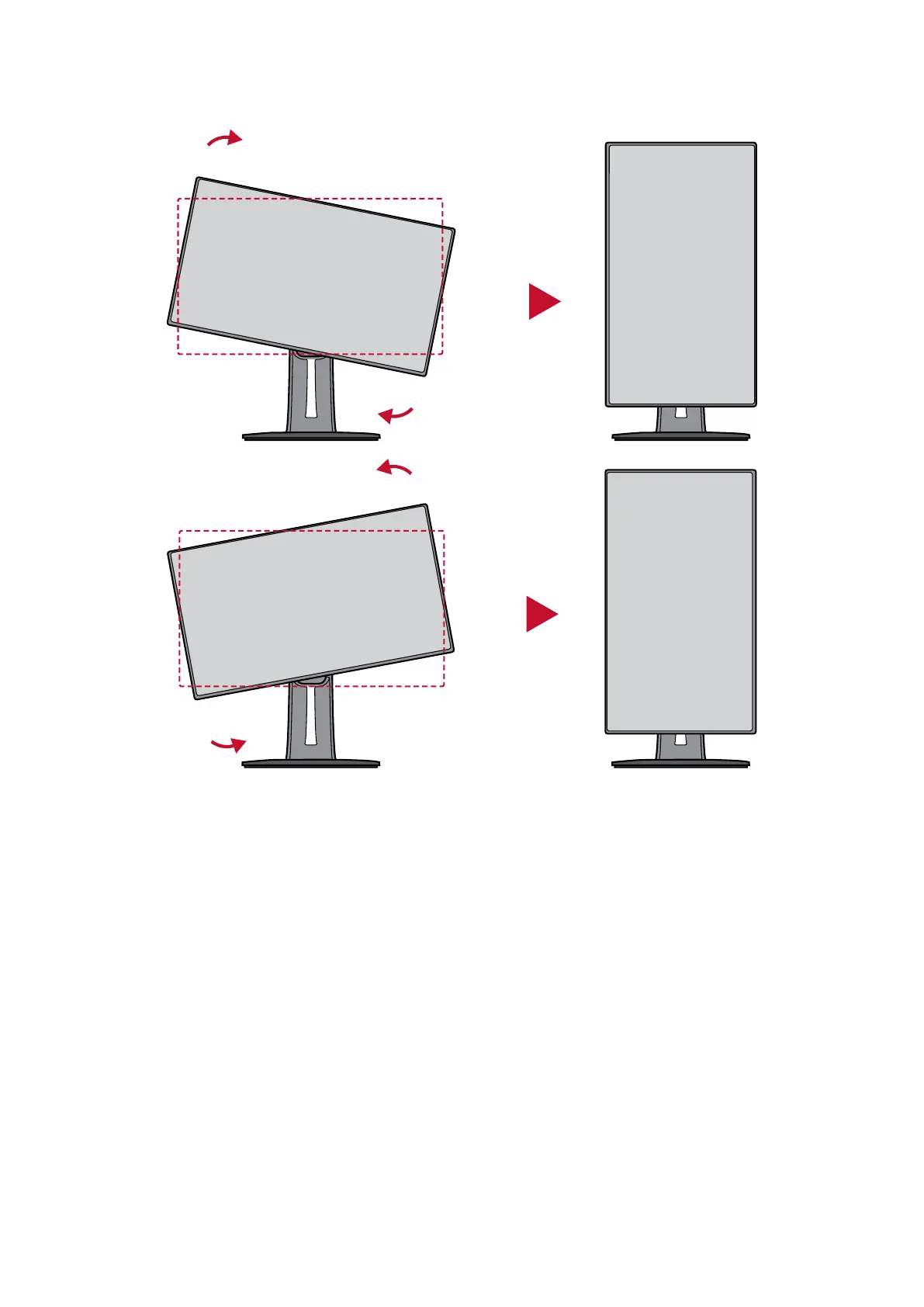 2. Rotate the monitor 90° clockwise or counter clockwise from landscape to portrait