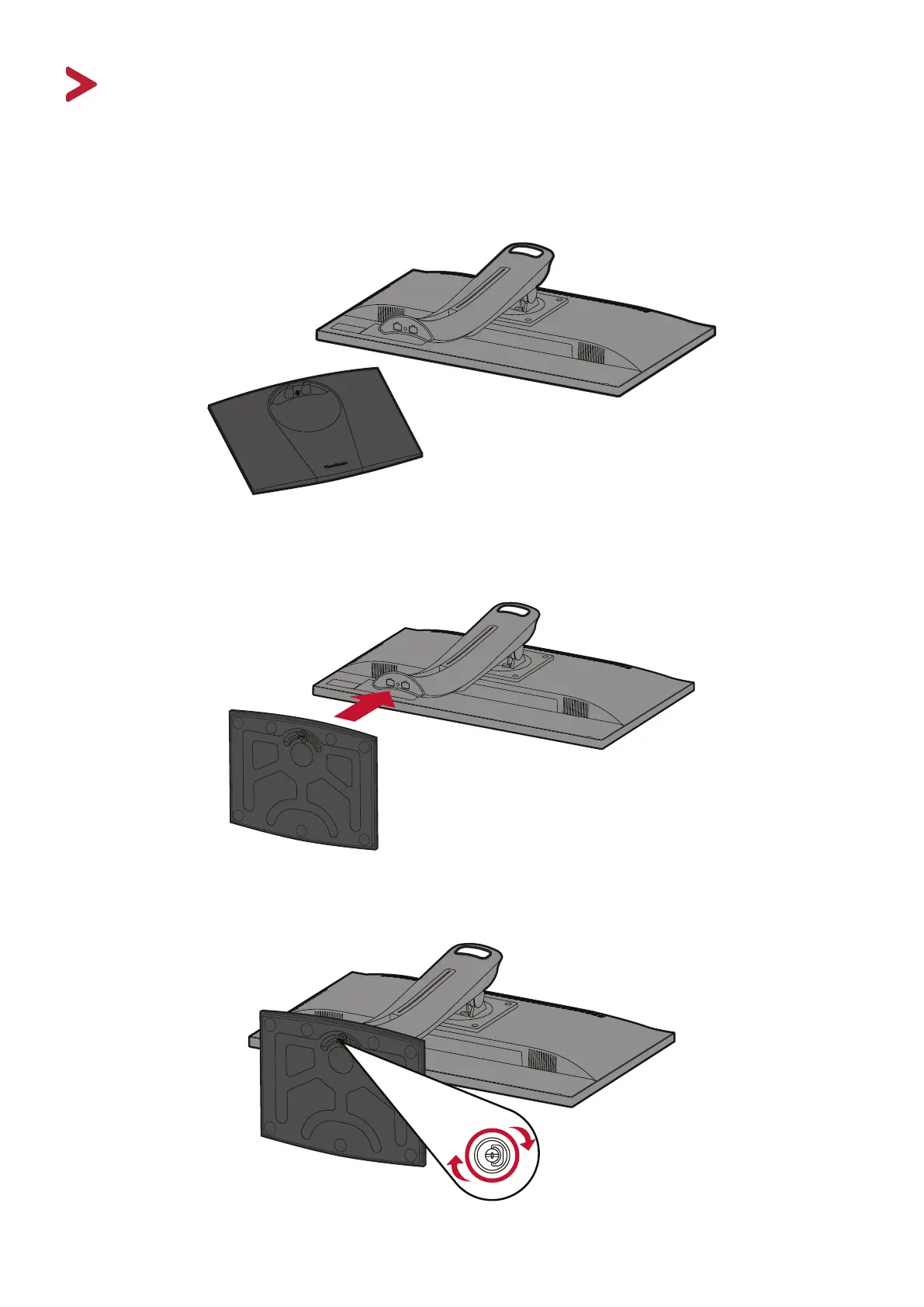 3. Use the captured screw in the monitor stand’s base and secure it to the monitor