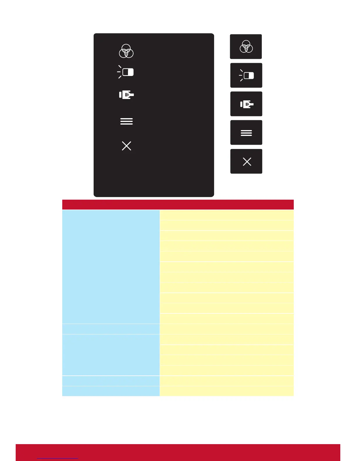Menu Refer to Menu OSD Table for detail items