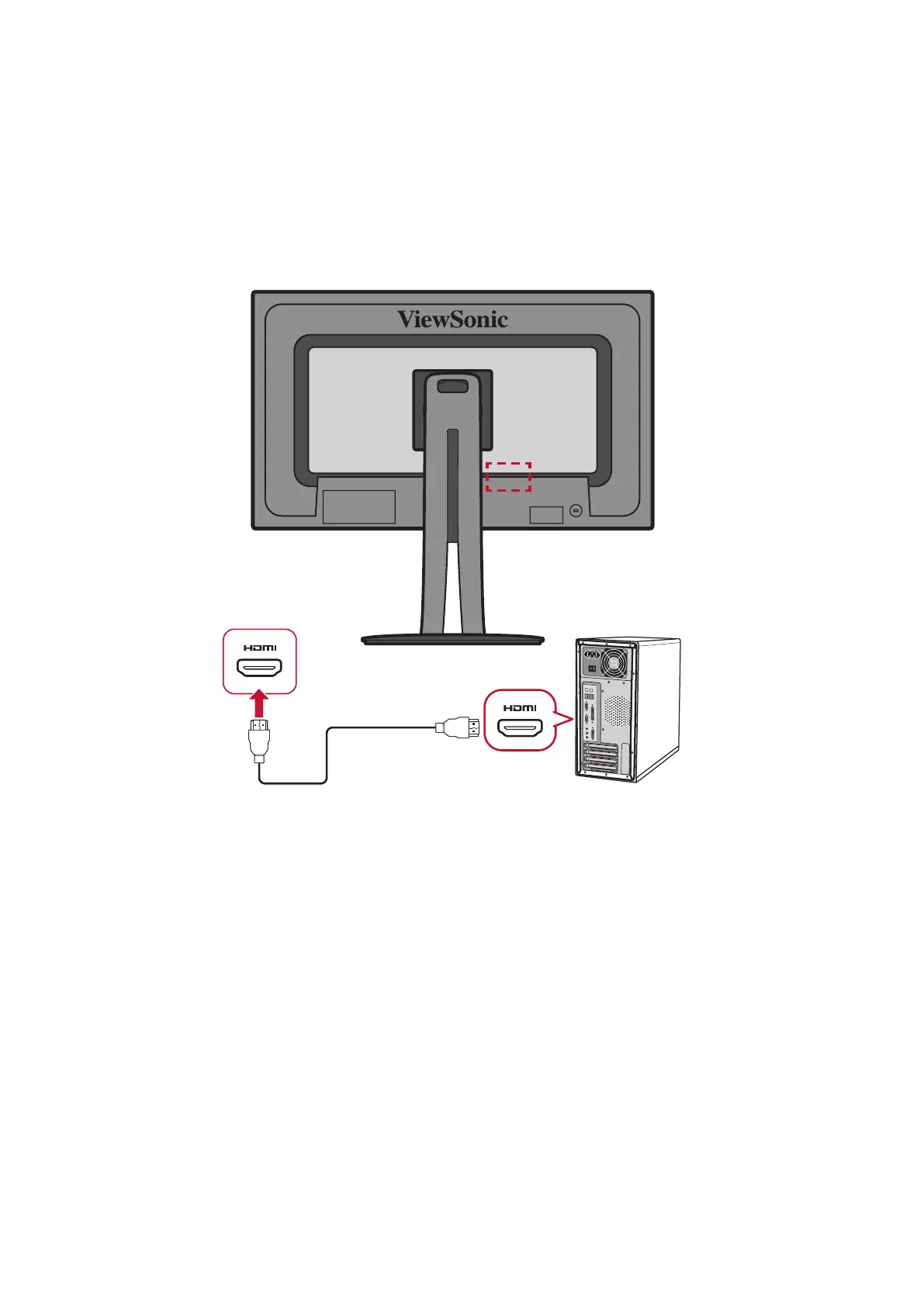 Connect one end of an HDMI cable to the HDMI port of your monitor. Then connect