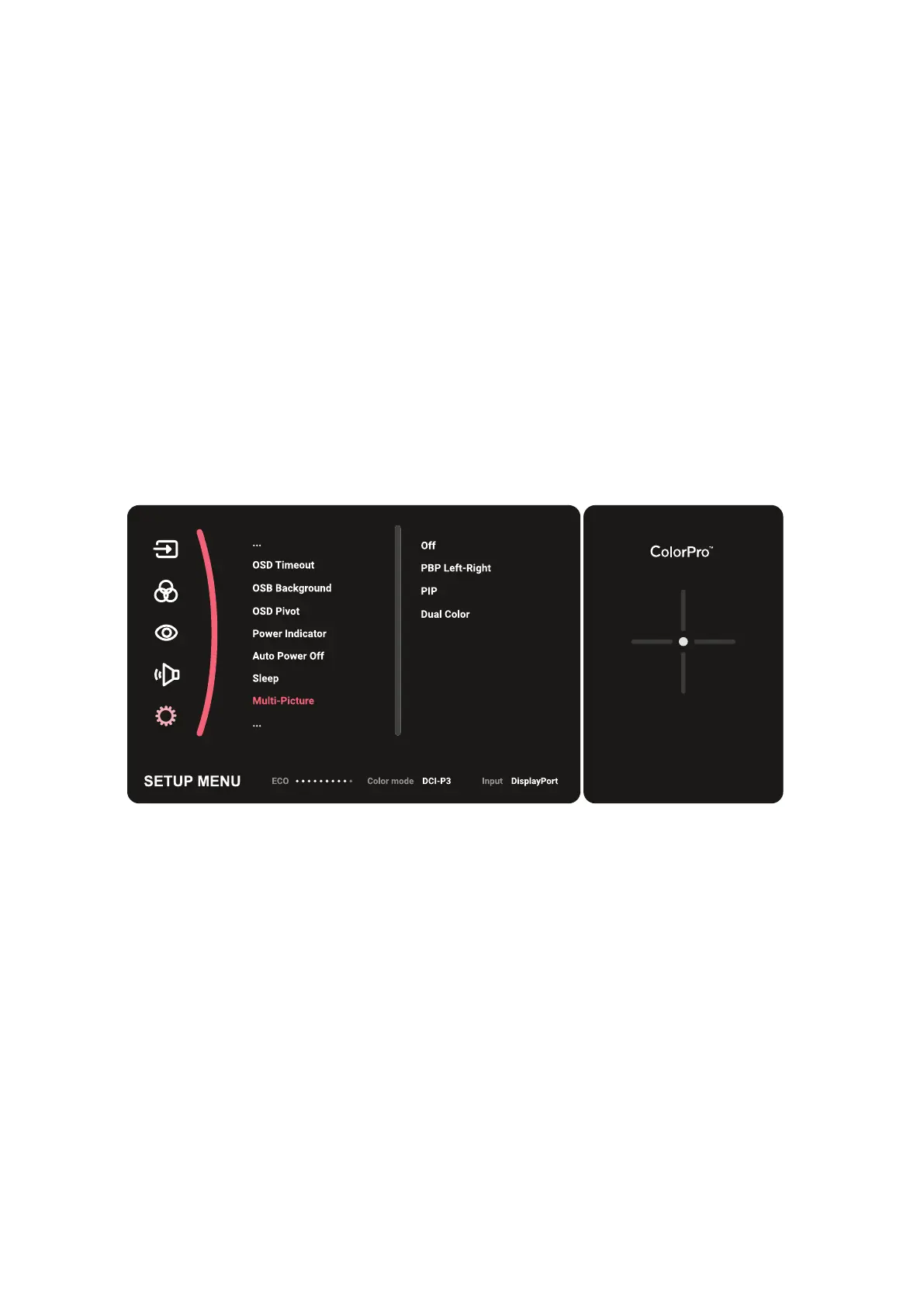 4. Move the Joy Key p or q to select PBP Left-Right or PIP. Then press the l key to