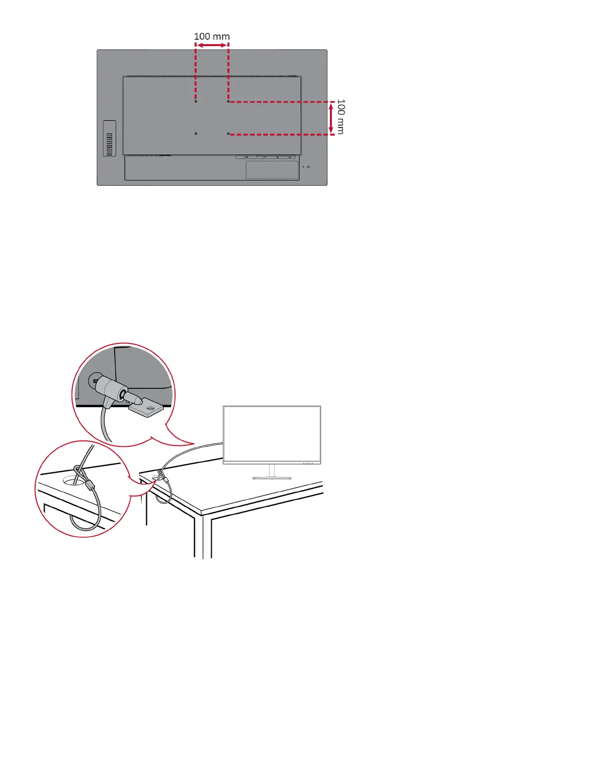 Additionally, fastening the monitor to a wall or fixed object using a security cable can help support the