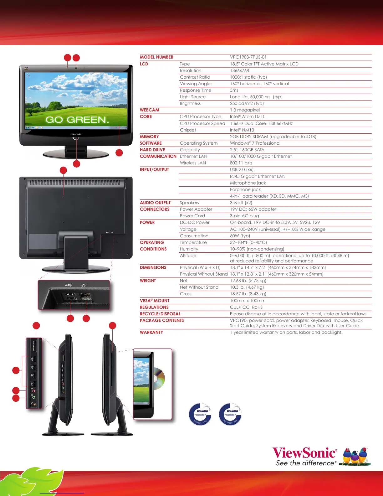 of their respective companies. Copyright © 2011 ViewSonic Corporation. All rights reserved. [15481-00B-02/11] VPC190-1