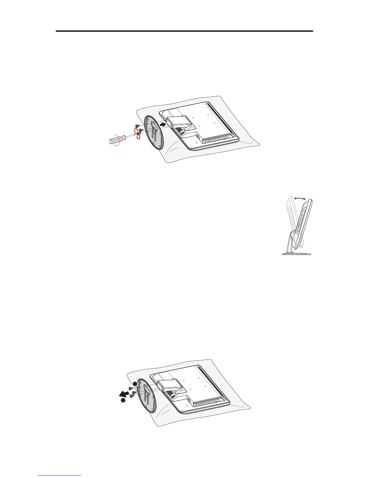 Should there be a need to detach the stand (i.e., for wall mounting), follow the steps