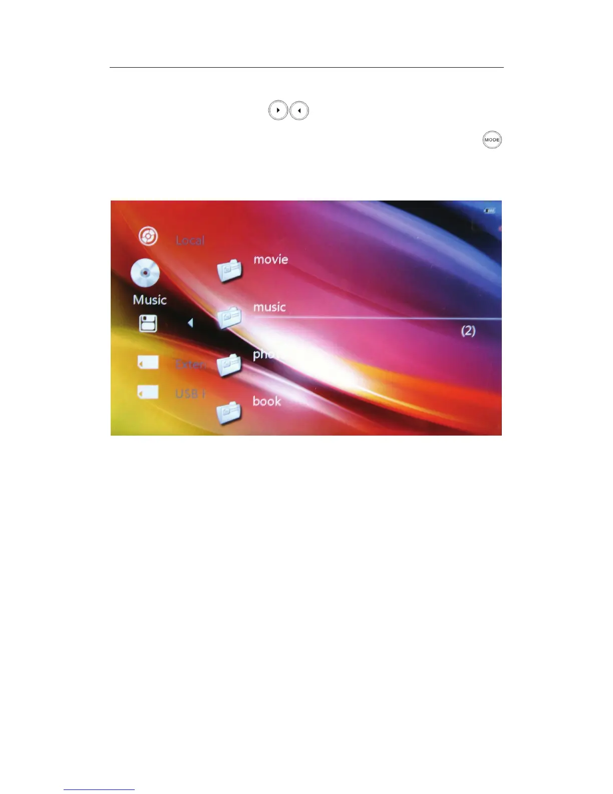 parenthesis as shown. Scroll down to the “music” folder and press on