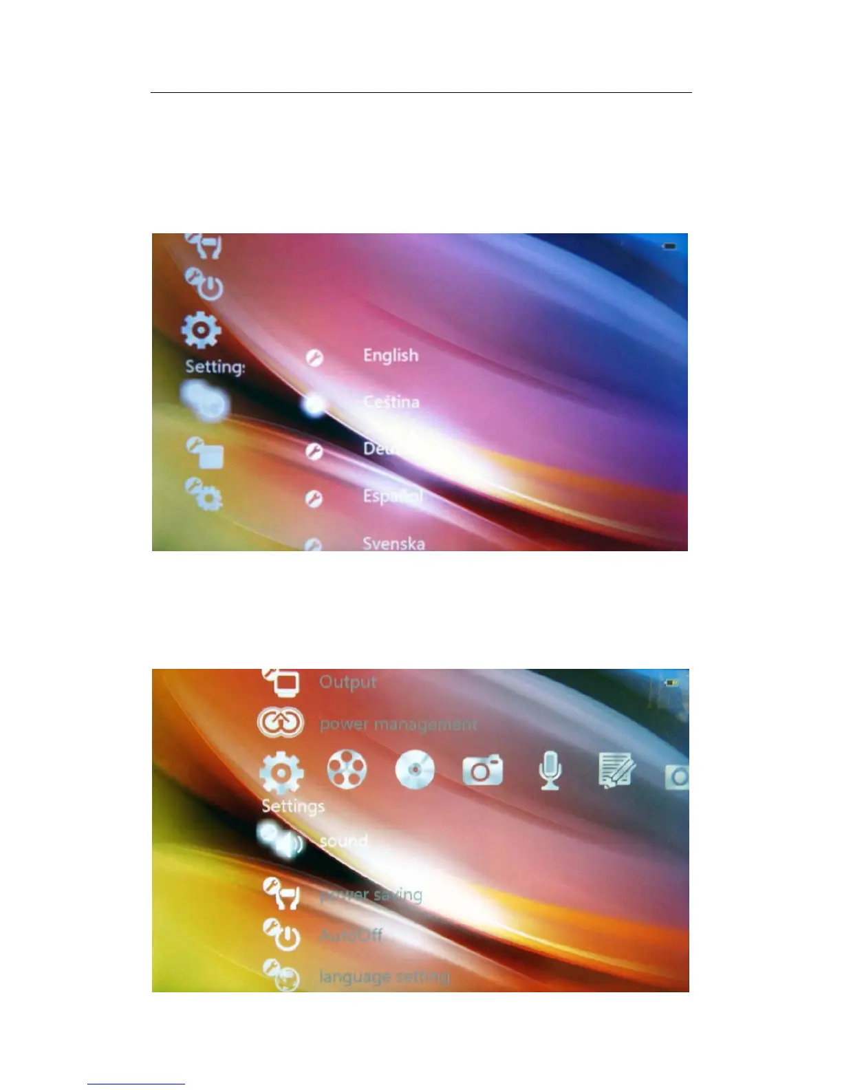 setting screen.