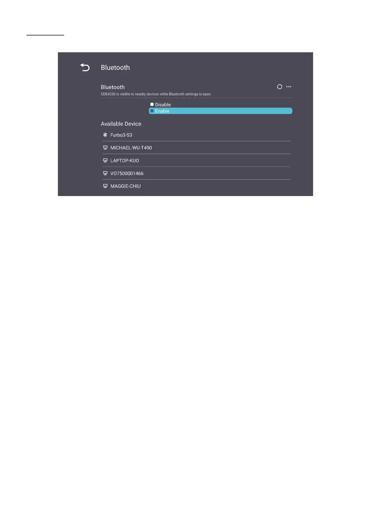 Enable/Disable Bluetooth.