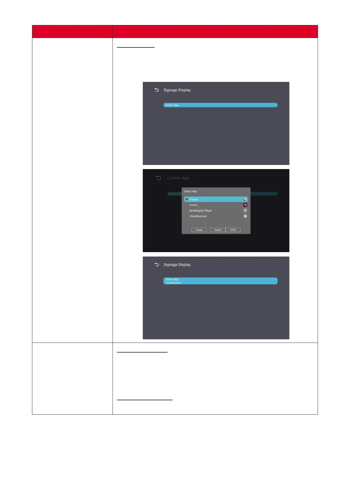 Custom App is setup, the display will open the App when the