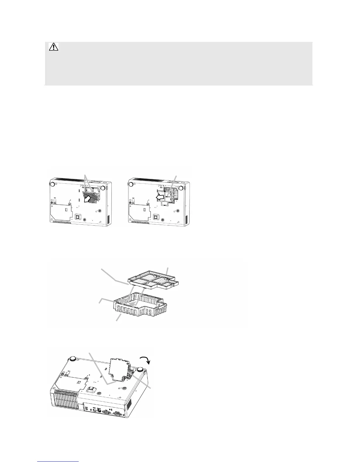 2. Quite la cubierta del proyector y el filtro de aire. Sujete los mangos mientras lo esté
