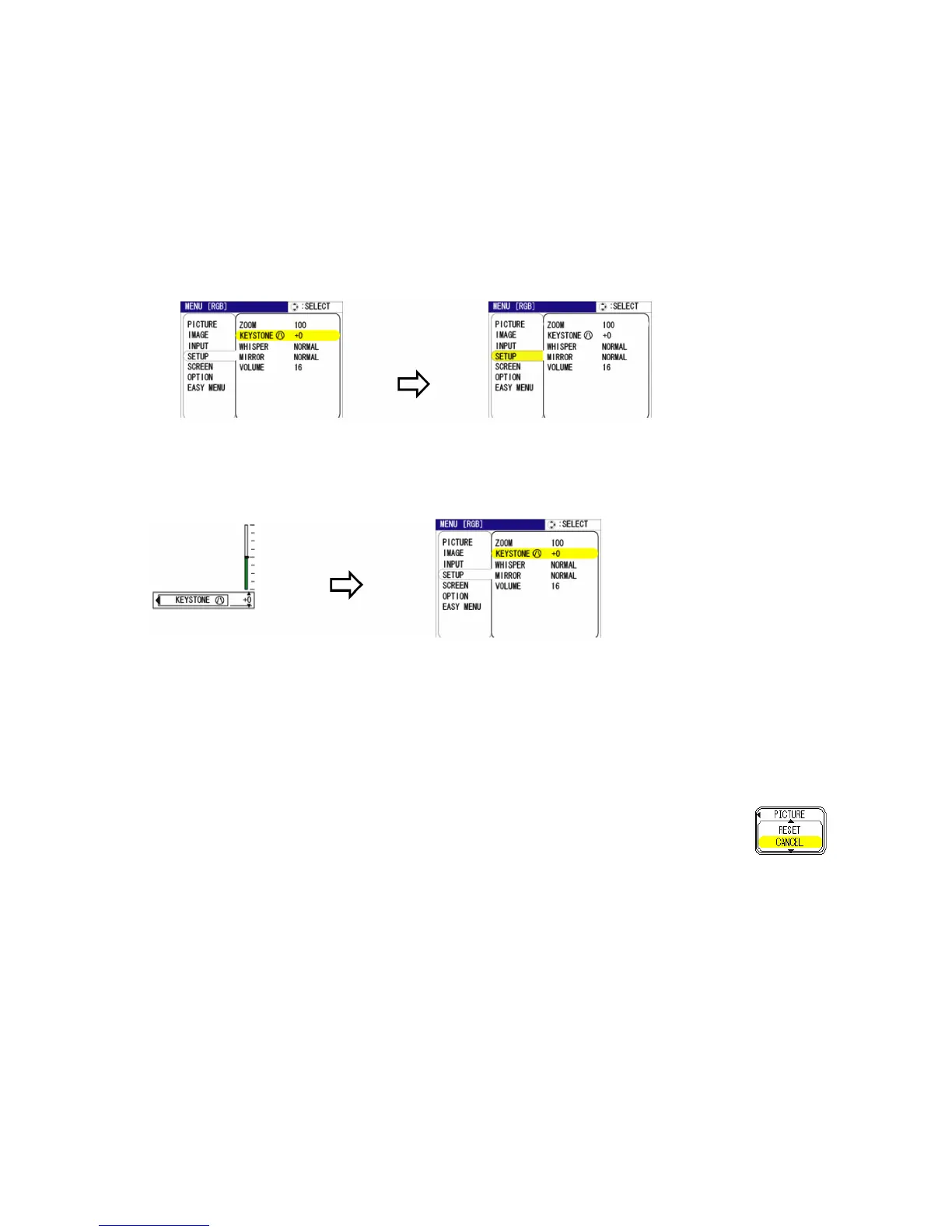 Apunte a “RESETEAR” en el menú usando los botones de cursor ▲/▼, después