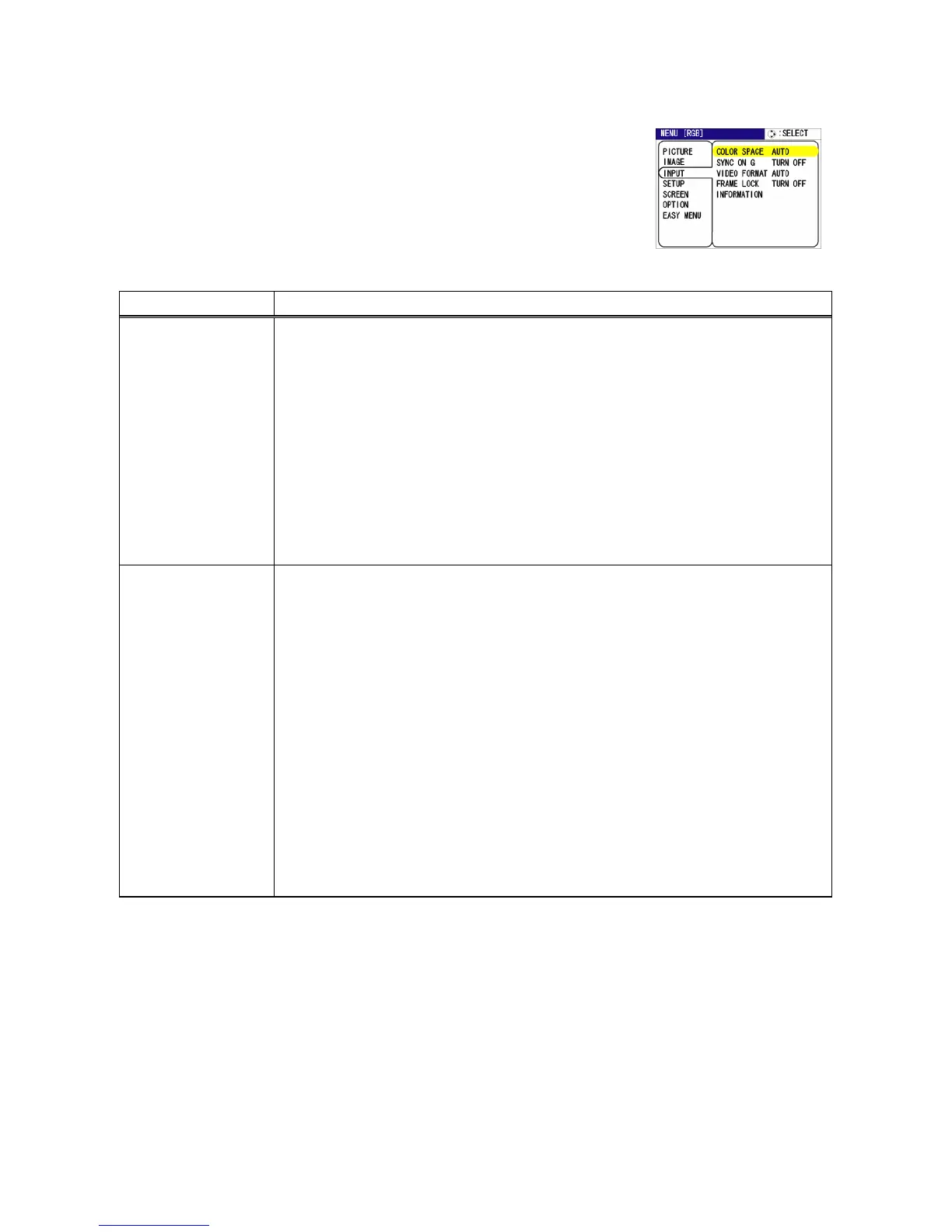 COLOR SPACE Mediante los botones ▲/▼, permite cambiar el modo de espacio de