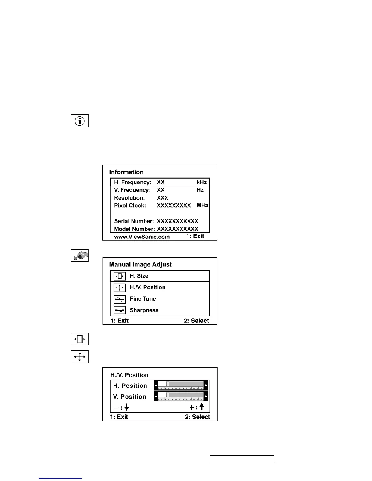 H./V. Position (Horizontal/Vertical Position) moves the screen image left or