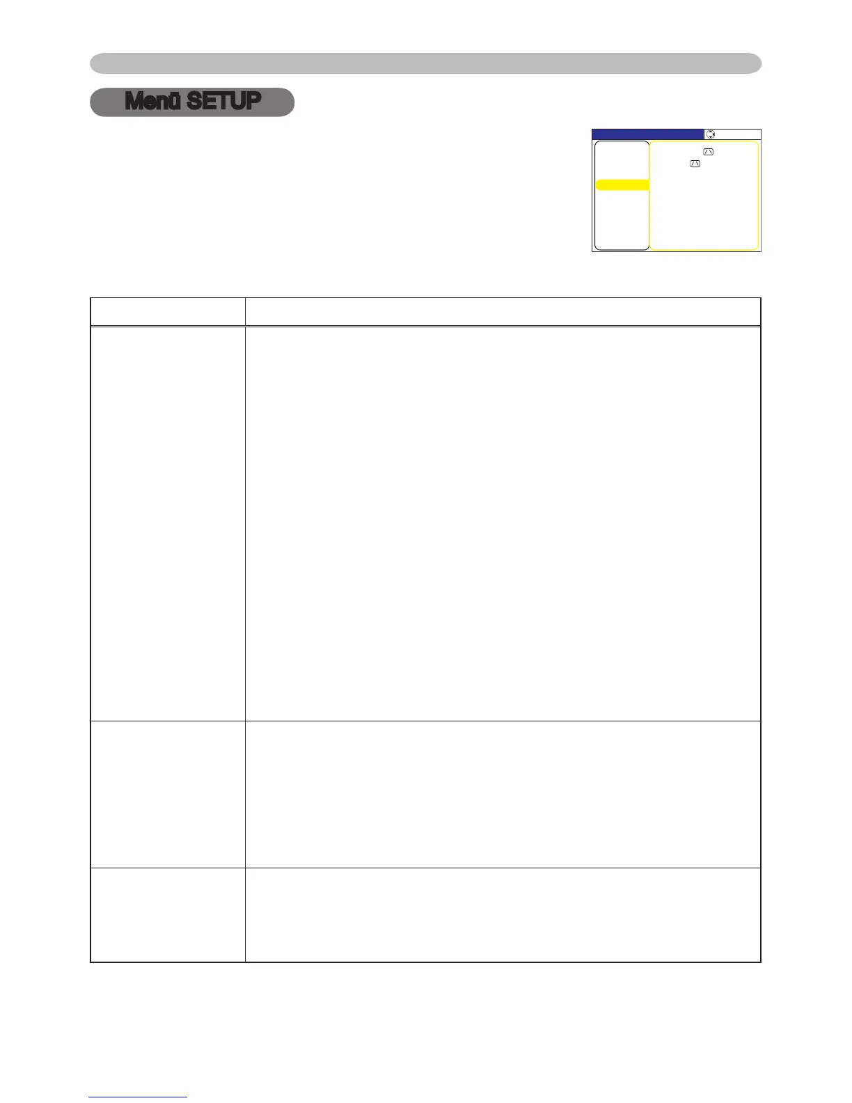 Im Menü SETUP können die in der Tabelle aufgeführten Funk-