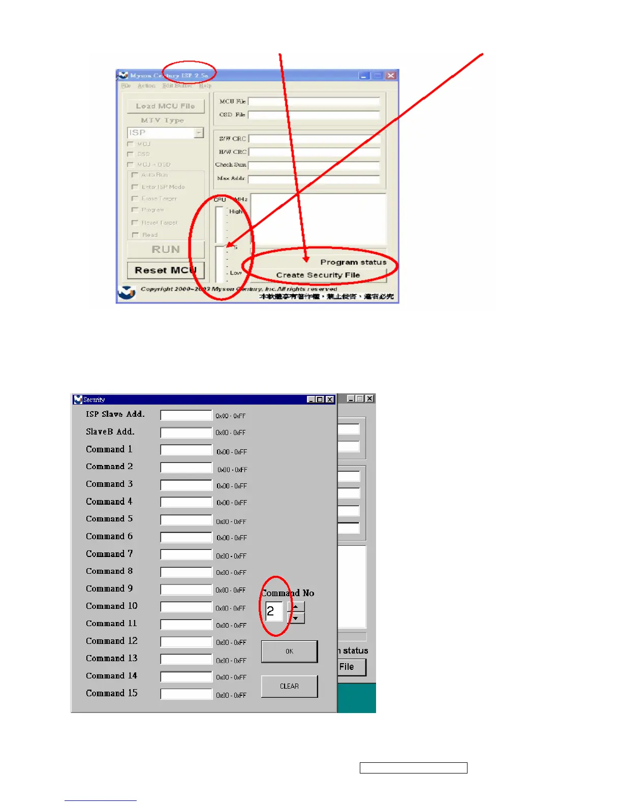 3.5 At least 2 Command No of security code, see Fig 3.5, and different security code between hardware ISP and software ISP.