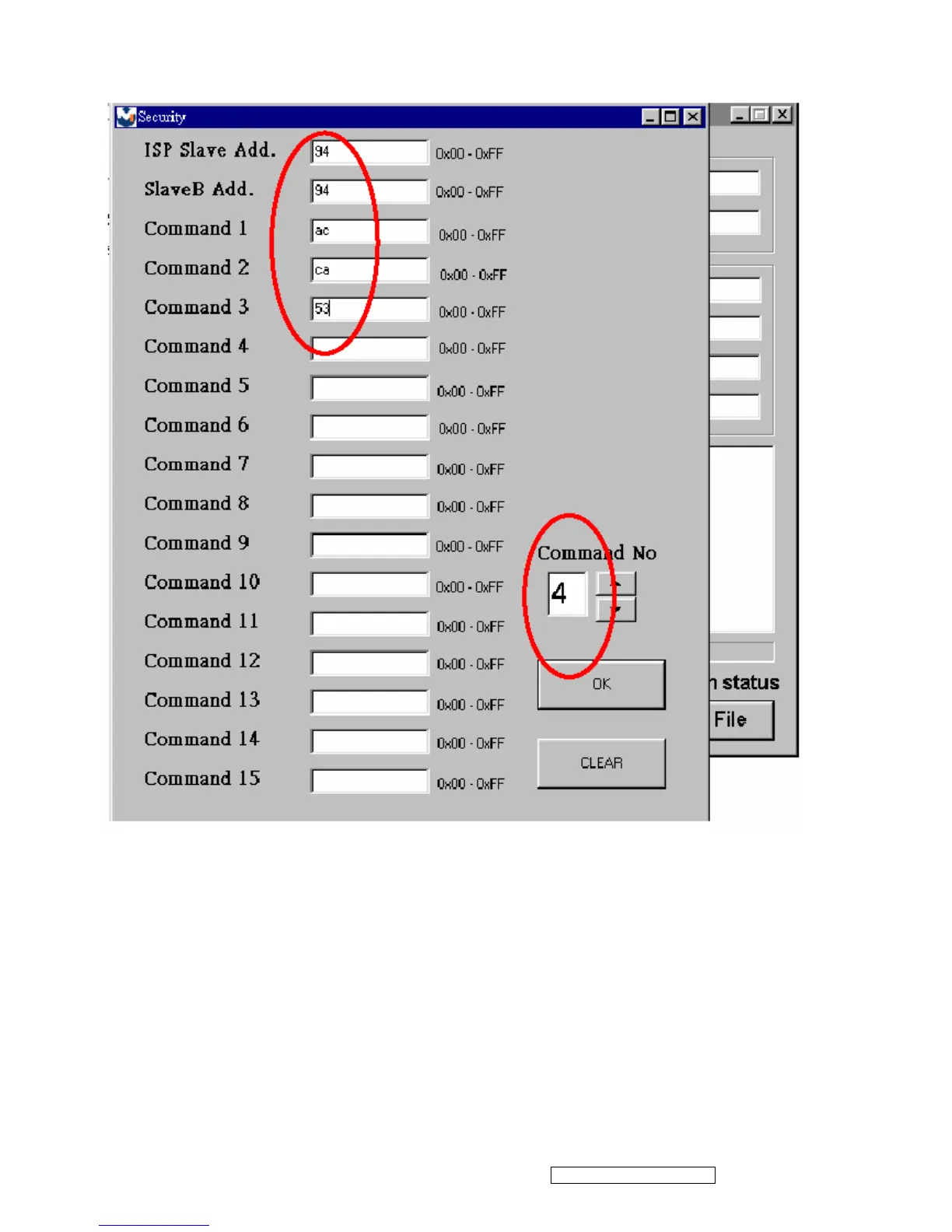 3.6 Fig 3.6 shows the setting for security code of hardware ISP, it needs 4 Command No, and key in command sequentially