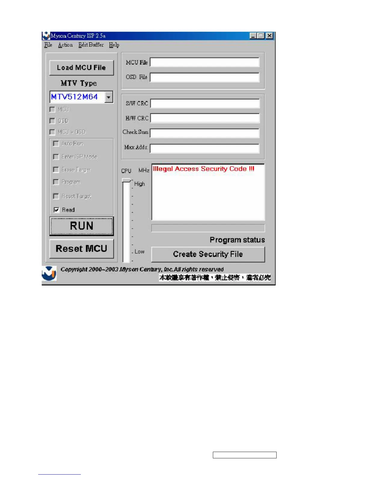 5.2 If user uses hardware ISP to read MCU content, it shows as Fig 5.2.