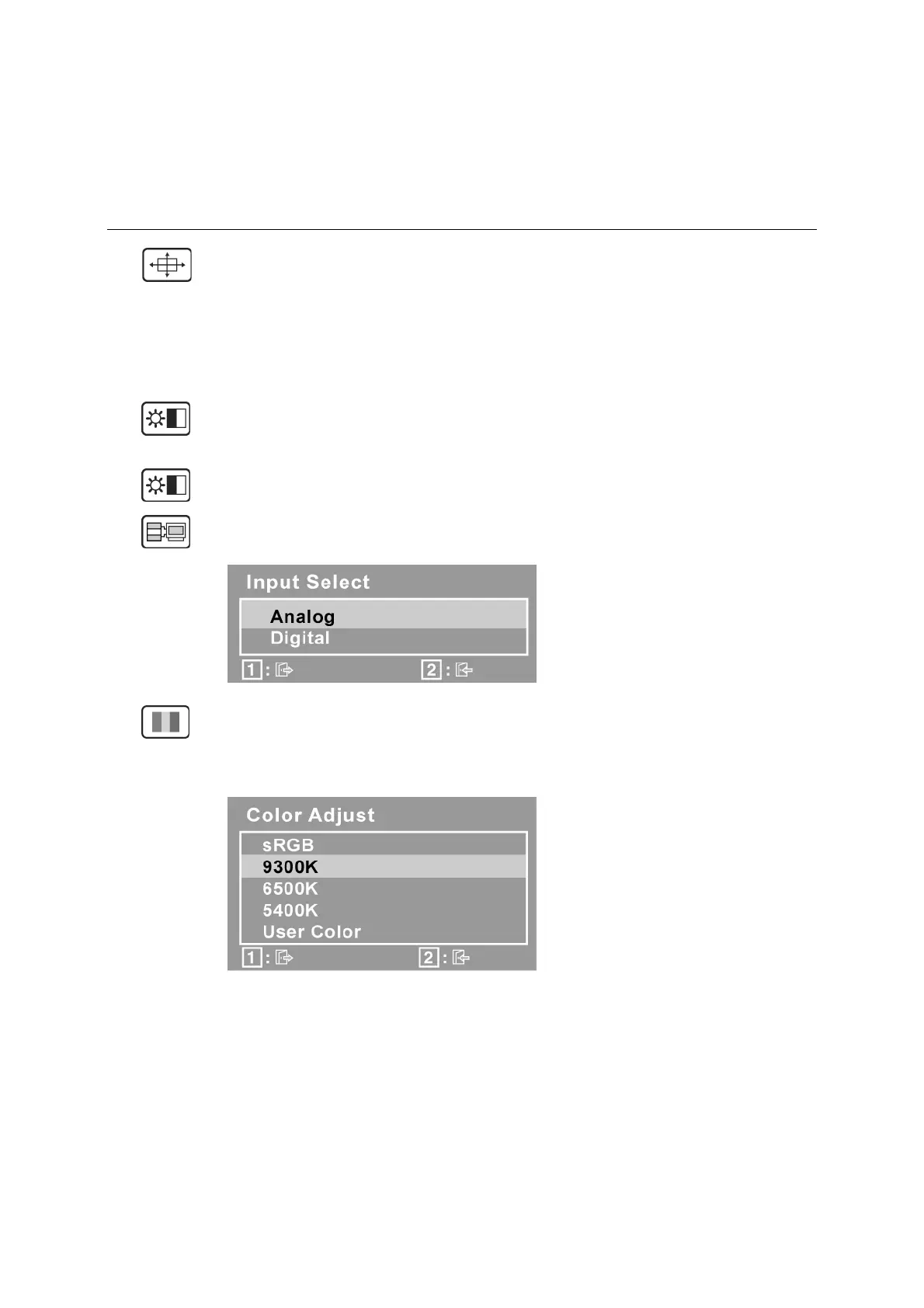 red (R), green (G), and blue (B). The factory setting for this product is 6500K