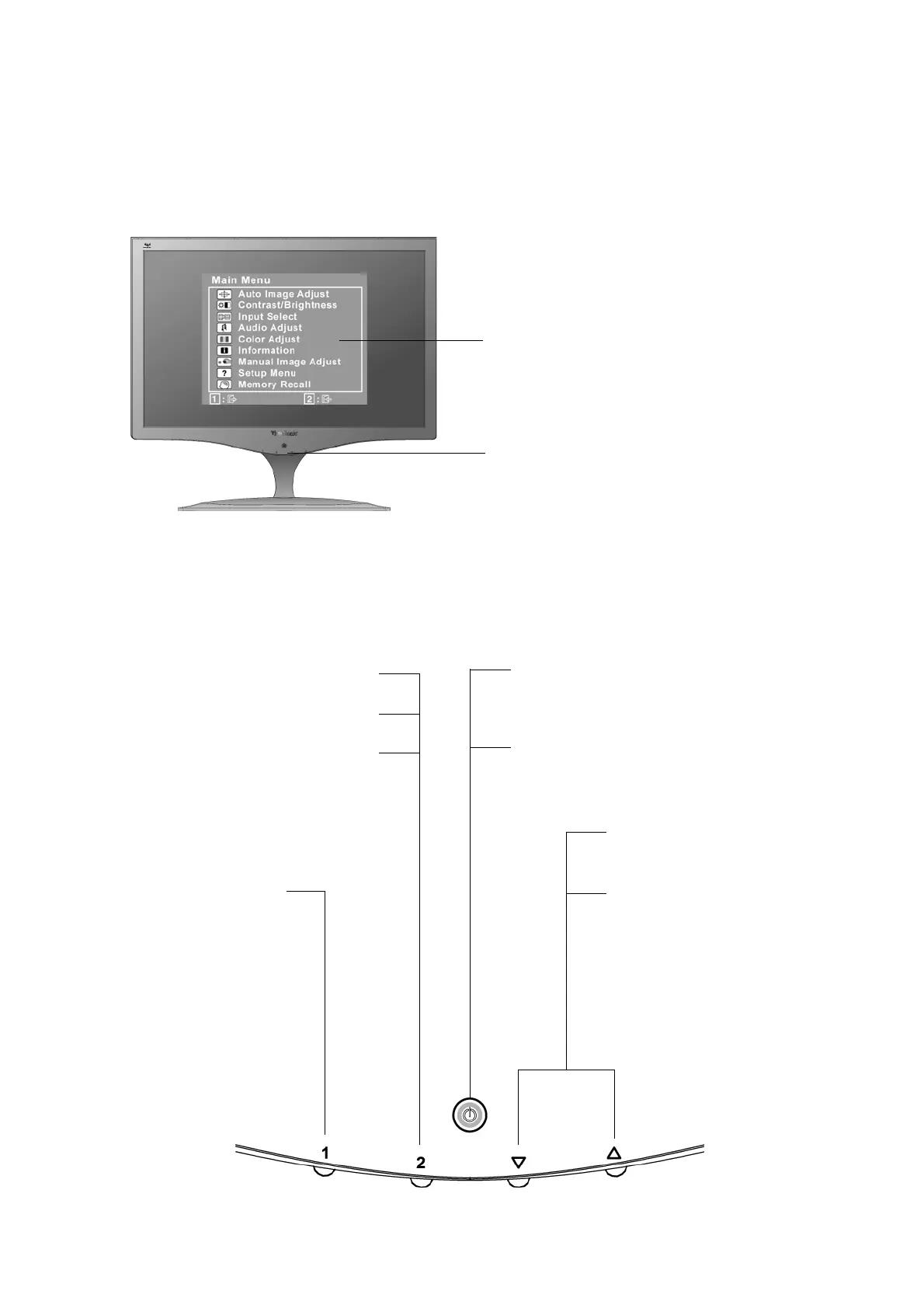 on the screen. The OSD controls are explained at the top of the next page and are defined in