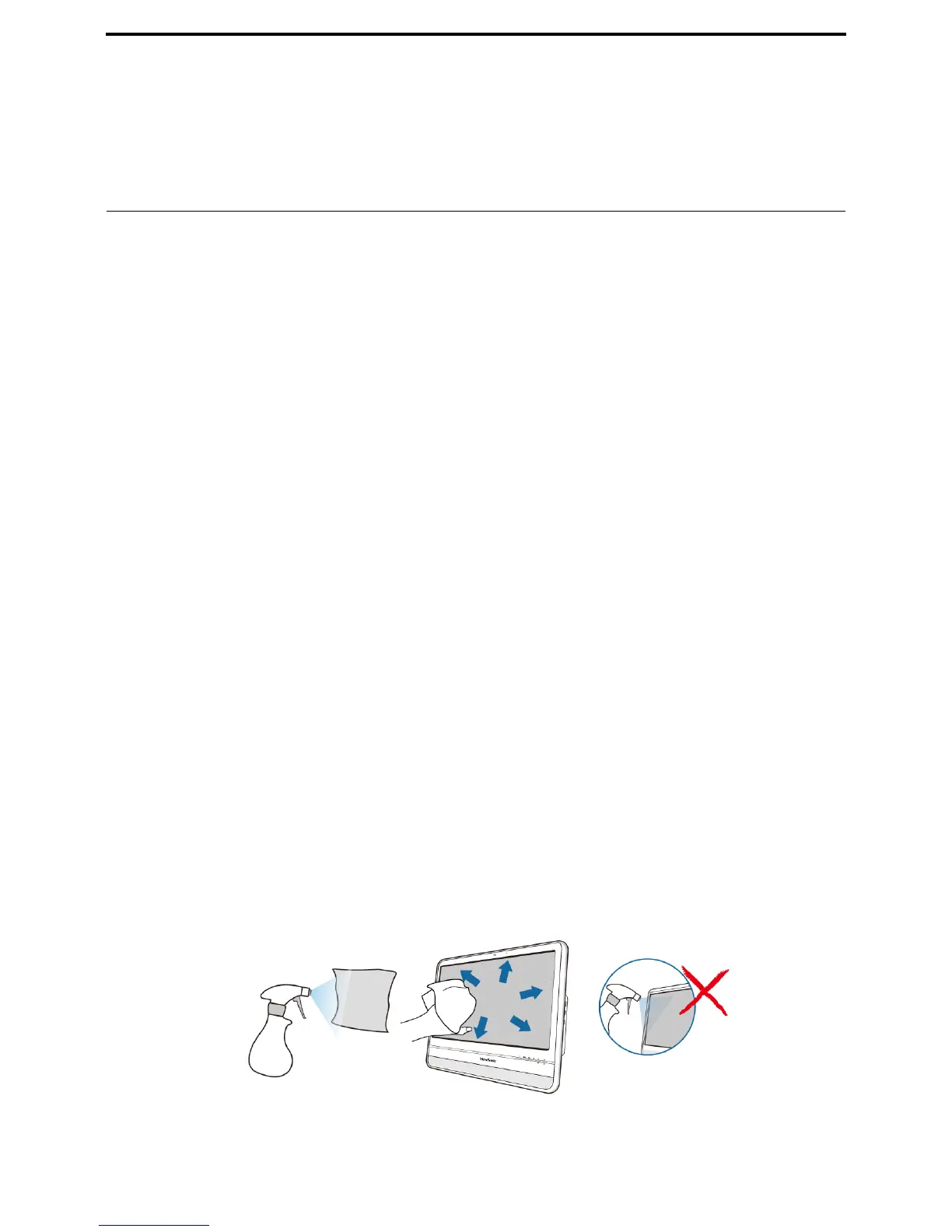 cloth, and then carefully wipe the screen surface with it. Never spray cleaner directly onto