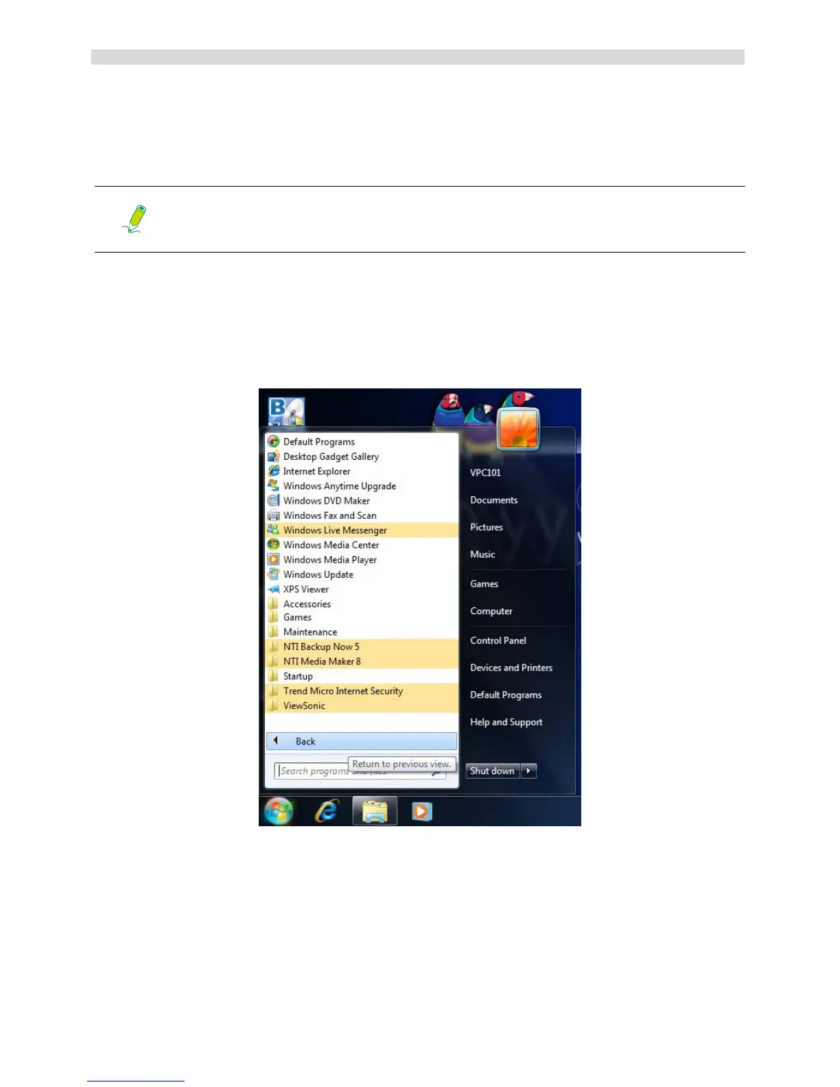 2. Click Start, then click All Programs to open the list of programs installed on your