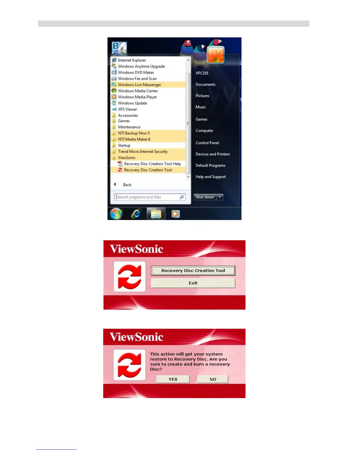 4. Click Recovery Disc Creation Tool.