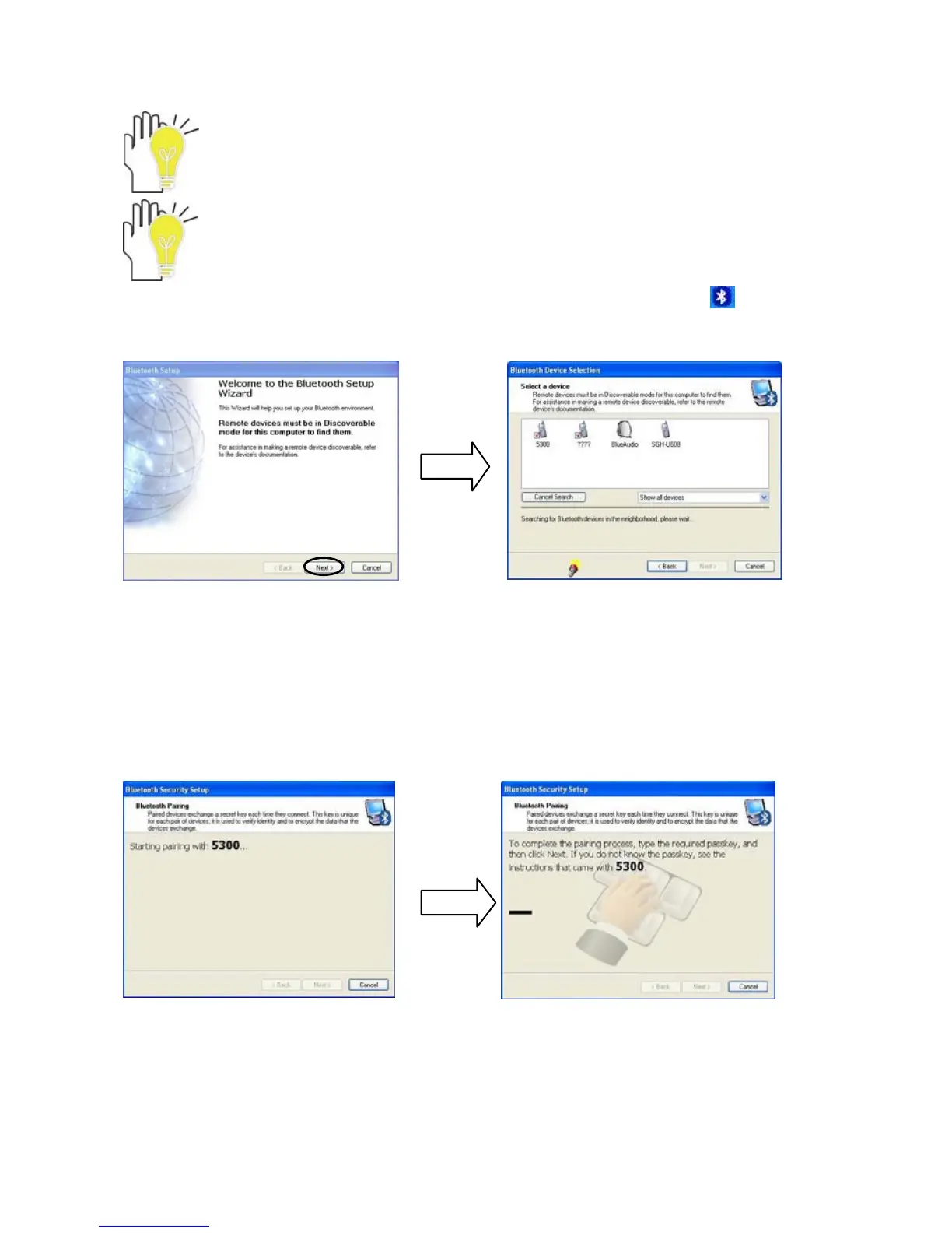 Before this step, please active your Bluetooth device (mobile phone, Bluetooth
