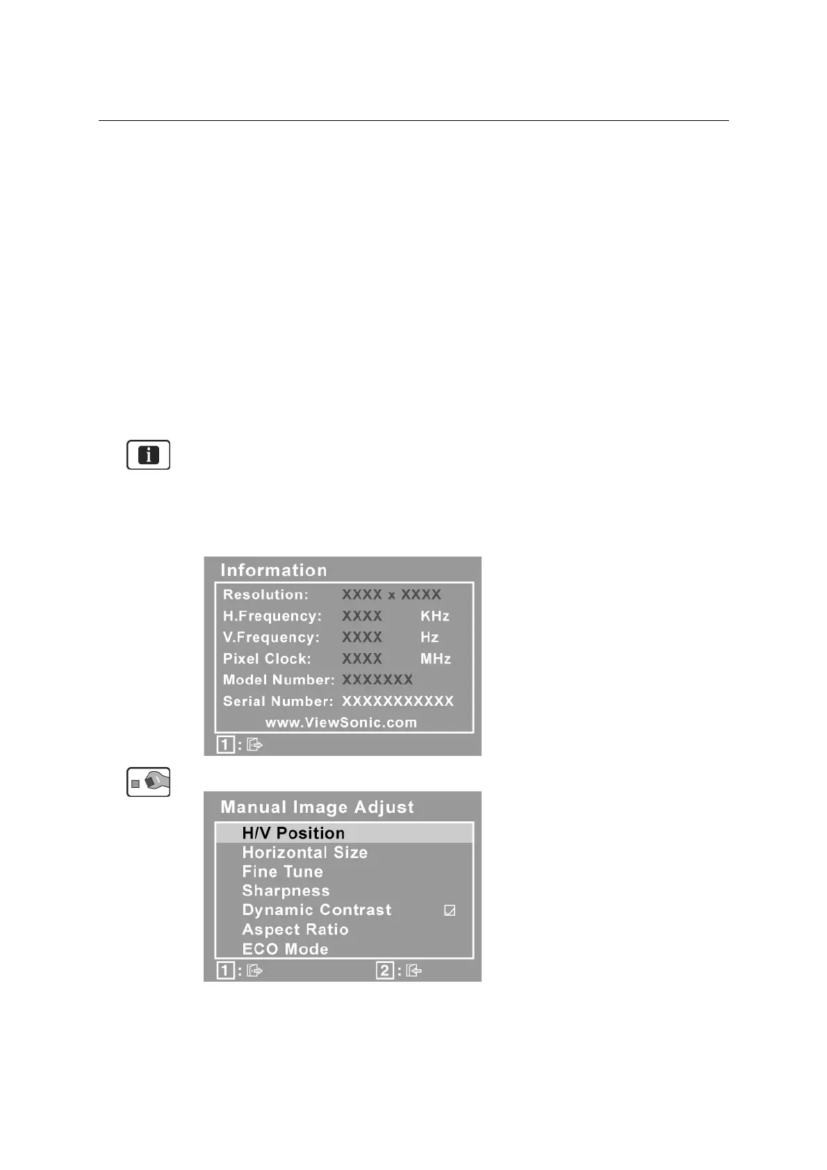 Manual Image Adjust displays the Manual Image Adjust menu.