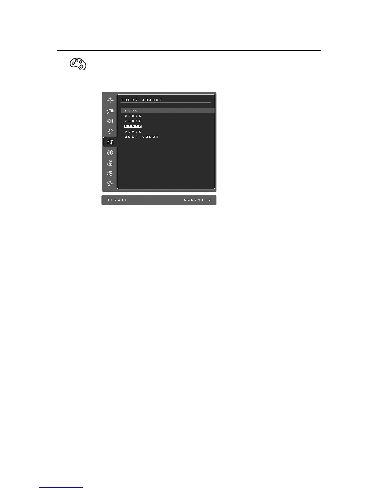 red (R), green (G), and blue (B). The factory setting for this product is 6500K