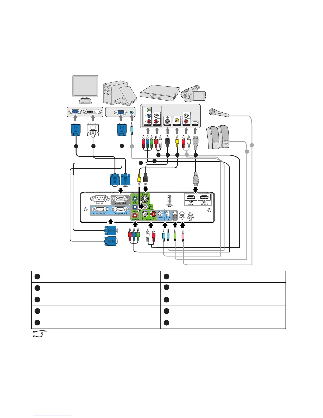 In the connections shown above, some cables may not be included with the