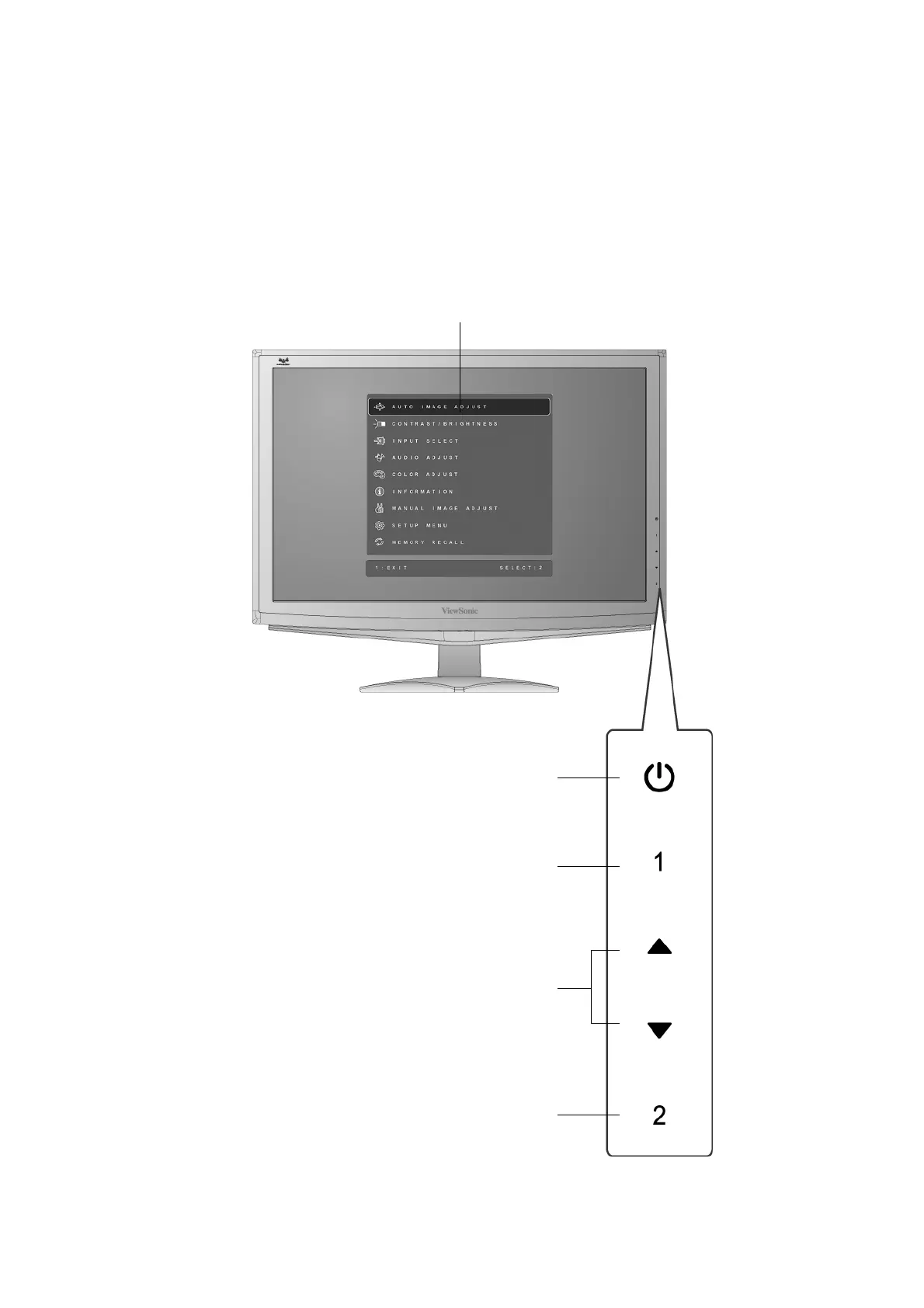 on the screen. The OSD controls are explained at the top of the next page and are defined in