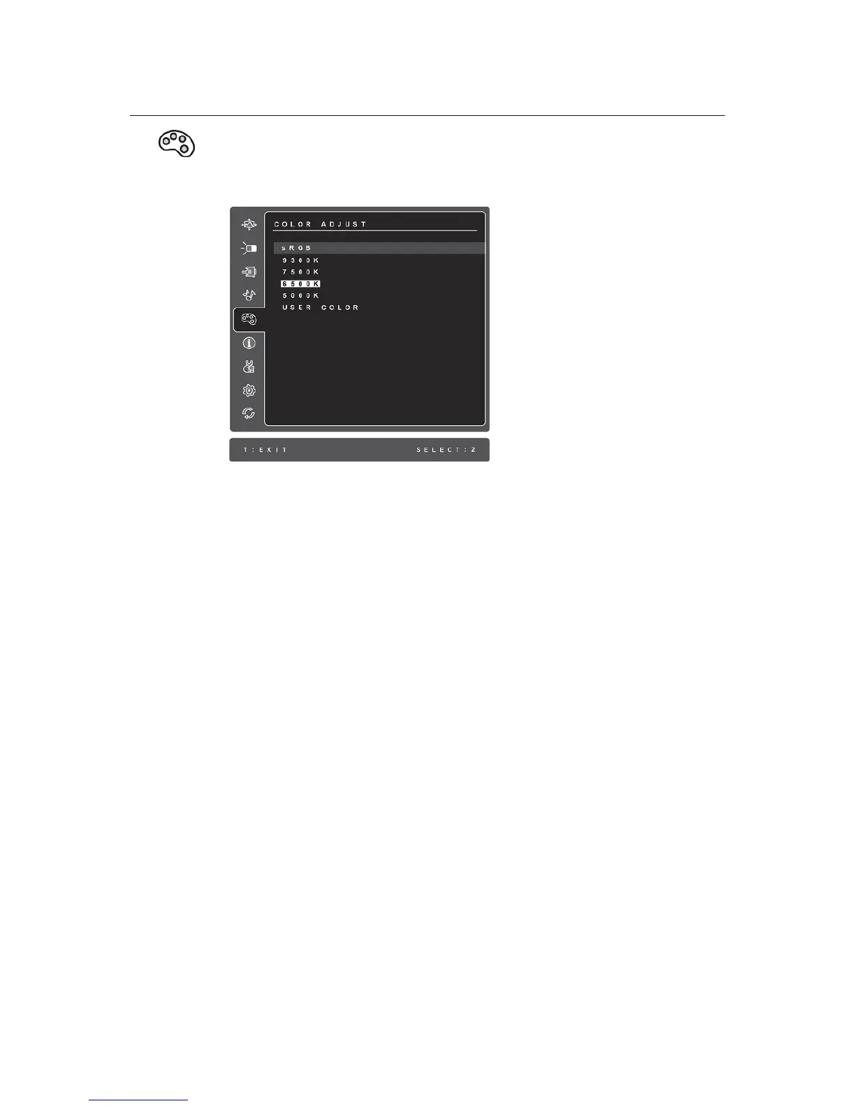 User Color!Individual adjustments for red (R), green (G),!and blue (B).