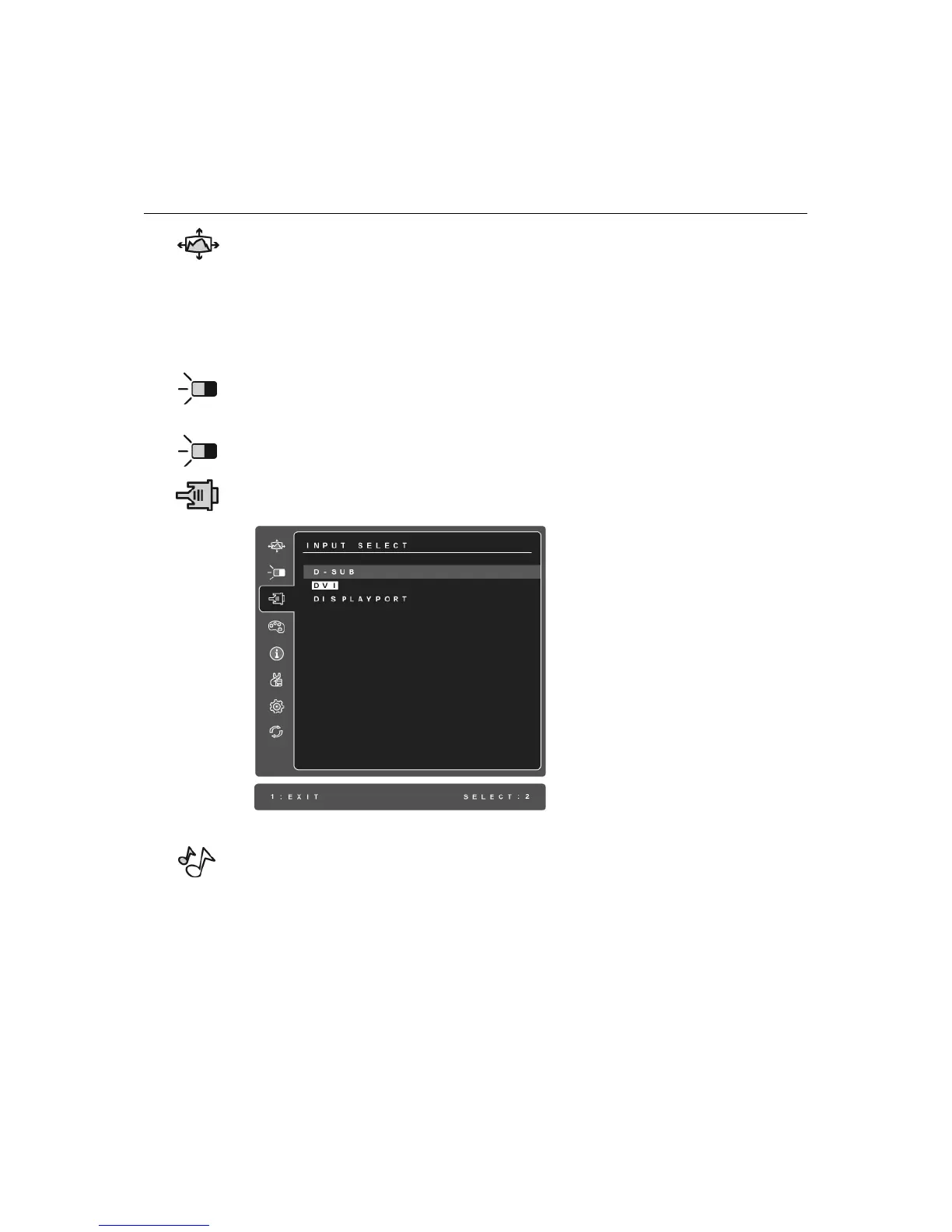 Input Select toggles between inputs if you have more than one computer