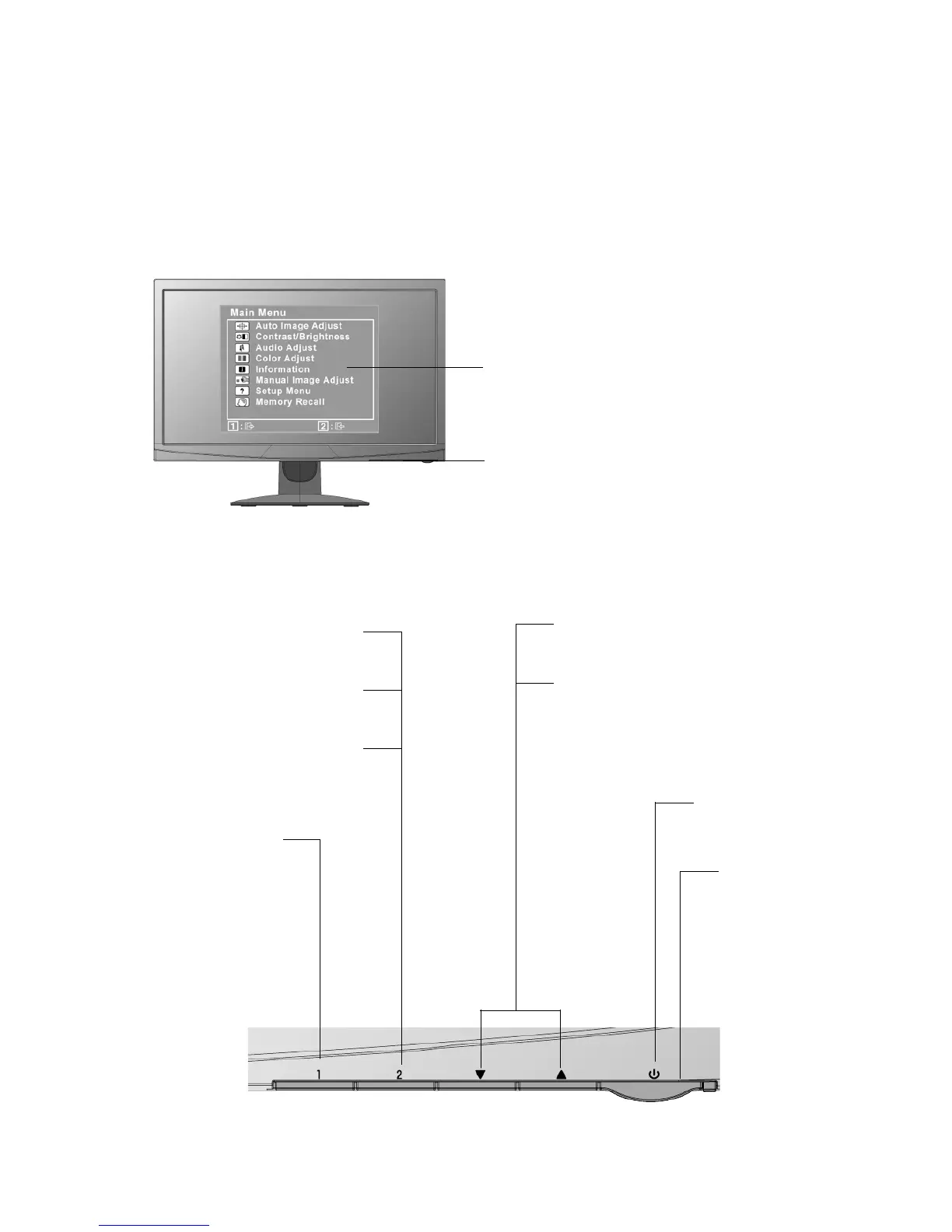 on the screen. The OSD controls are explained at the top of the next page and are defined in