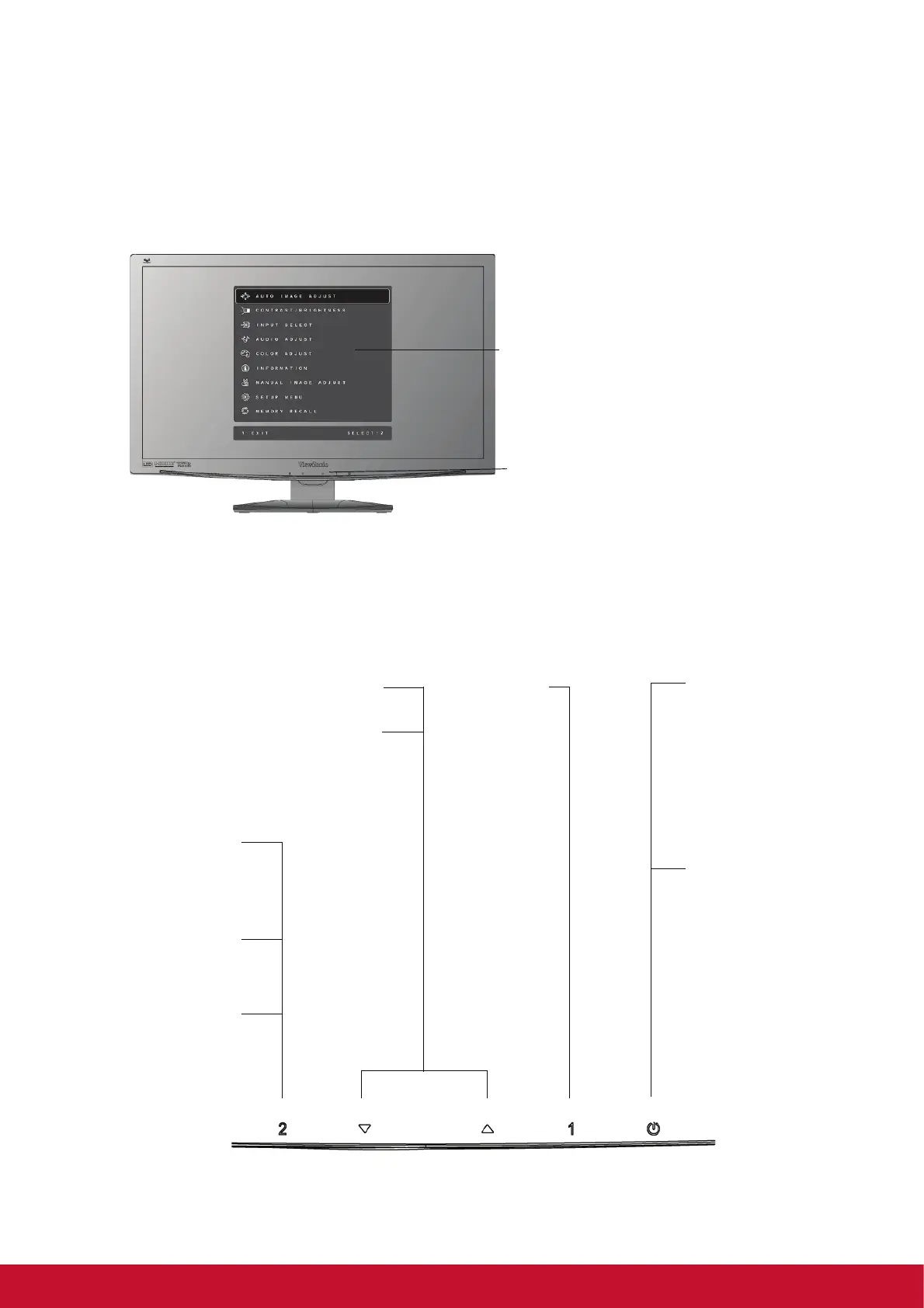 on the screen. The OSD controls are explained at the top of the next page and are defined in