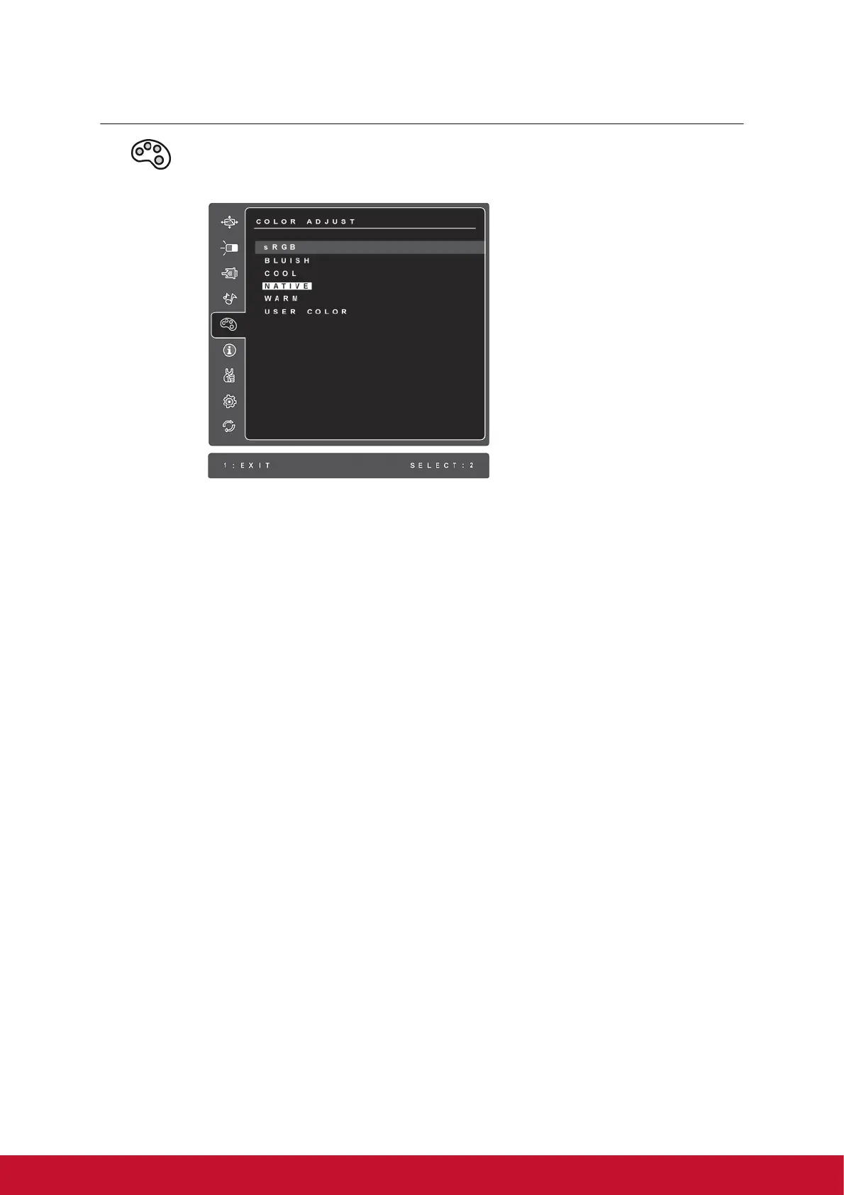red (R), green (G), and blue (B). The factory setting for this product is Native.