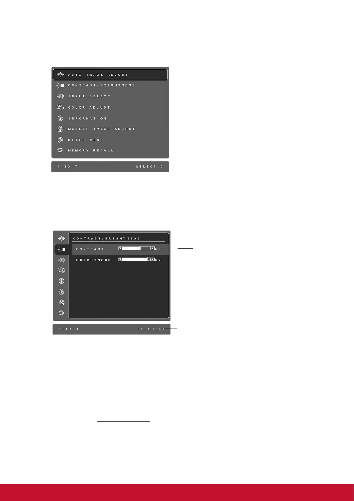 NOTE: All OSD menus and adjustment screens disappear automatically after about 15