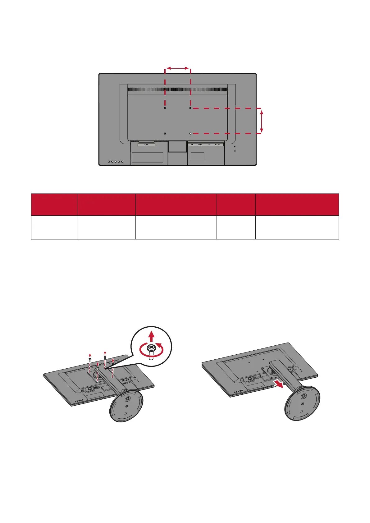 4. Aach the mounng bracket to the VESA mounng holes at the rear of the