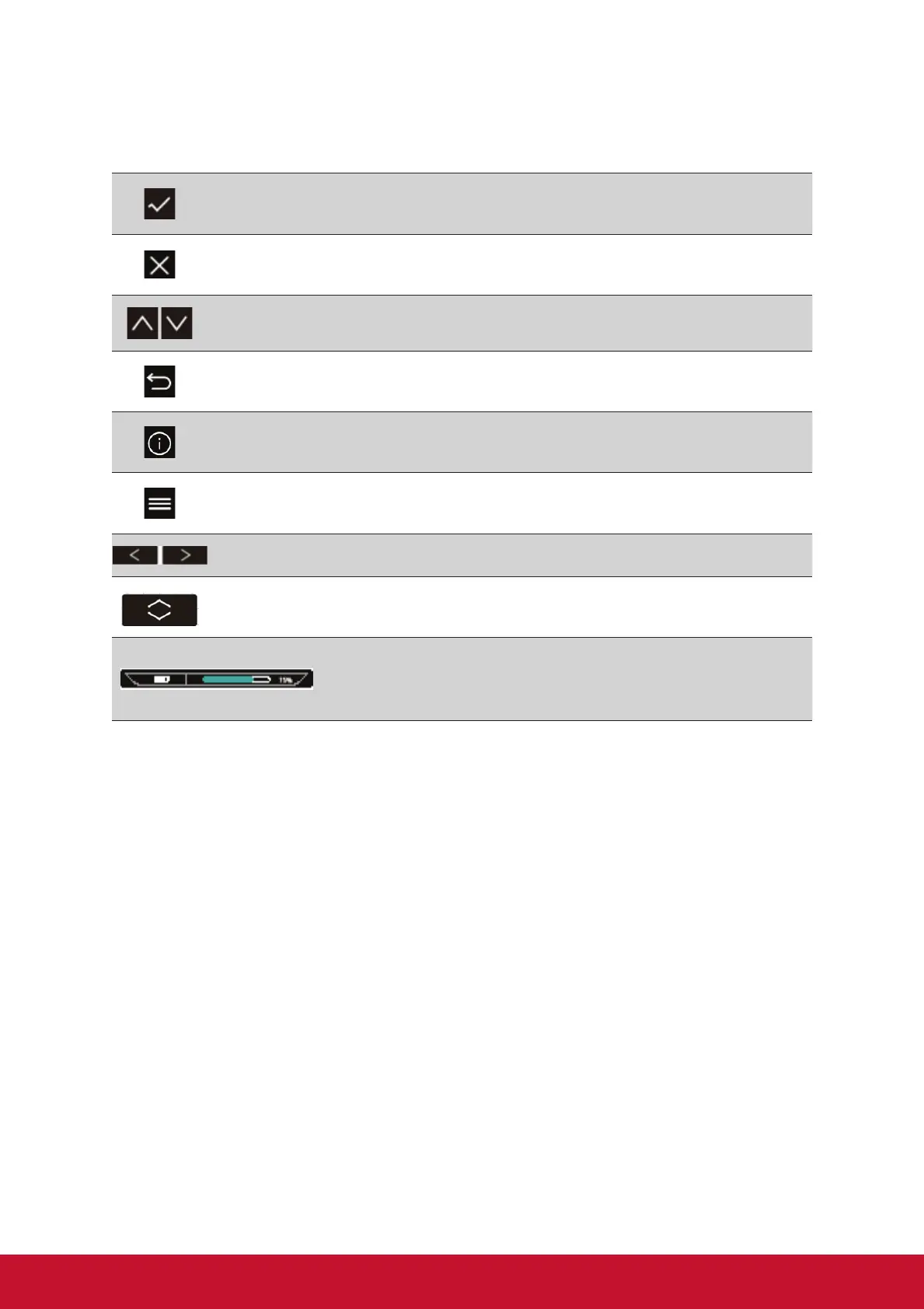 The OSD Menu and OSD Quick-Menu Symbol explanations and their functional
