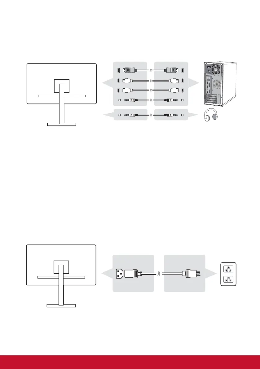 connector of monitor, and the AC plug of AC power cord to the